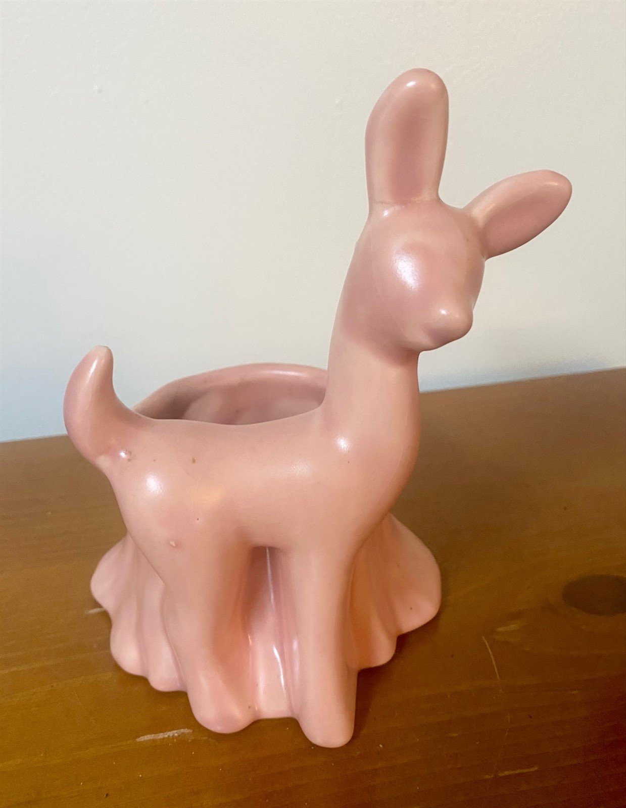 Vintage Matte Pink Haeger USA Pottery Charming Little Deer Planter Decor No Mark