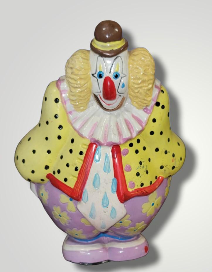 Vintage Mid Century Hard Plastic Small World Imports Clown Bank