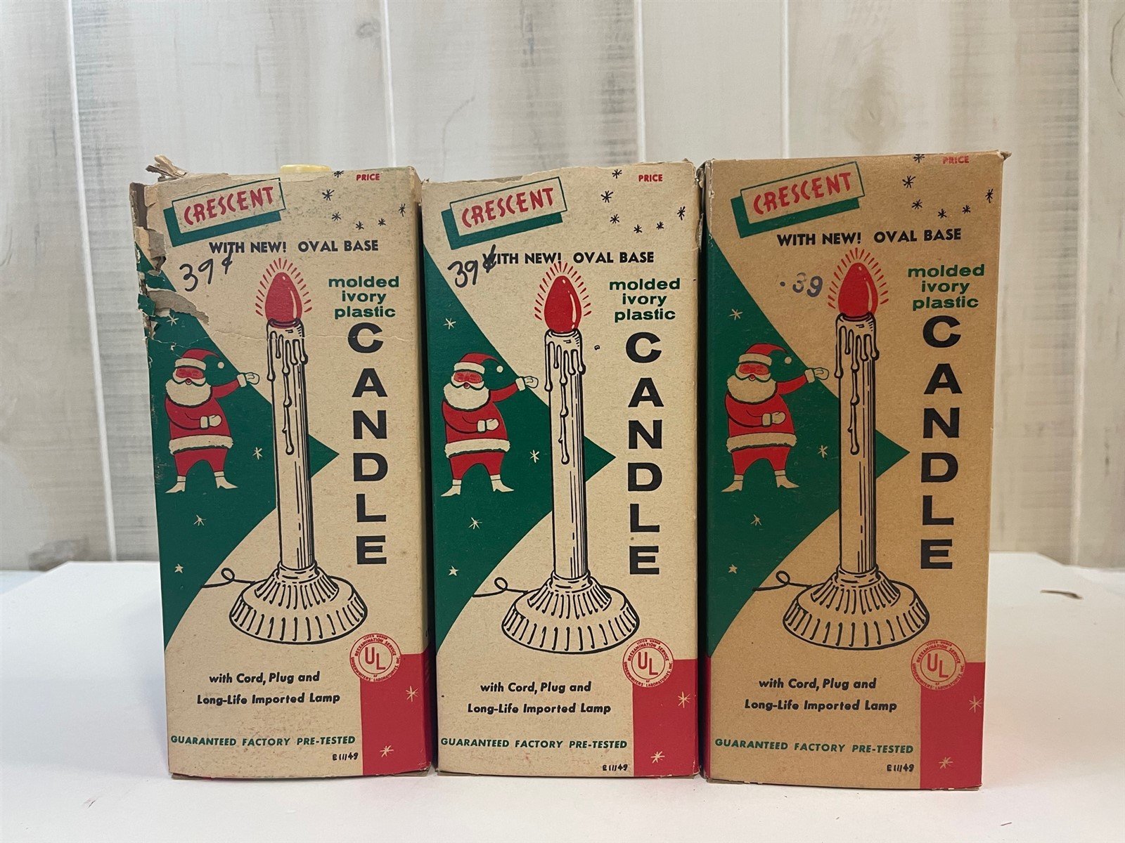 Vintage Mid Century Crescent Molded Candle Lamp Set of 3 Original Box