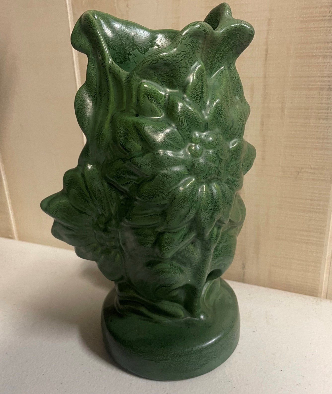 Vintage Mid Century Ceramic Green Sunflower Haeger Floral Vase