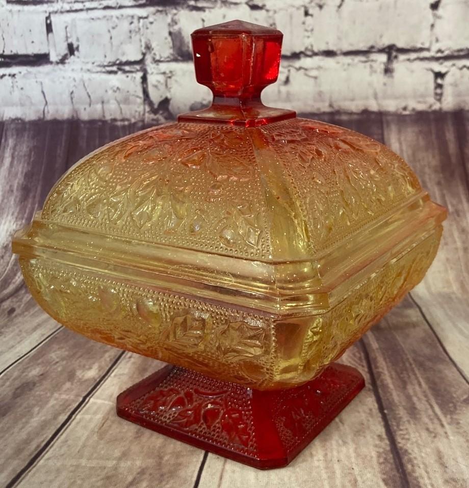 Vintage Mid Century Jeanette Ombre Acorns And Leaves Footed Candy Dish