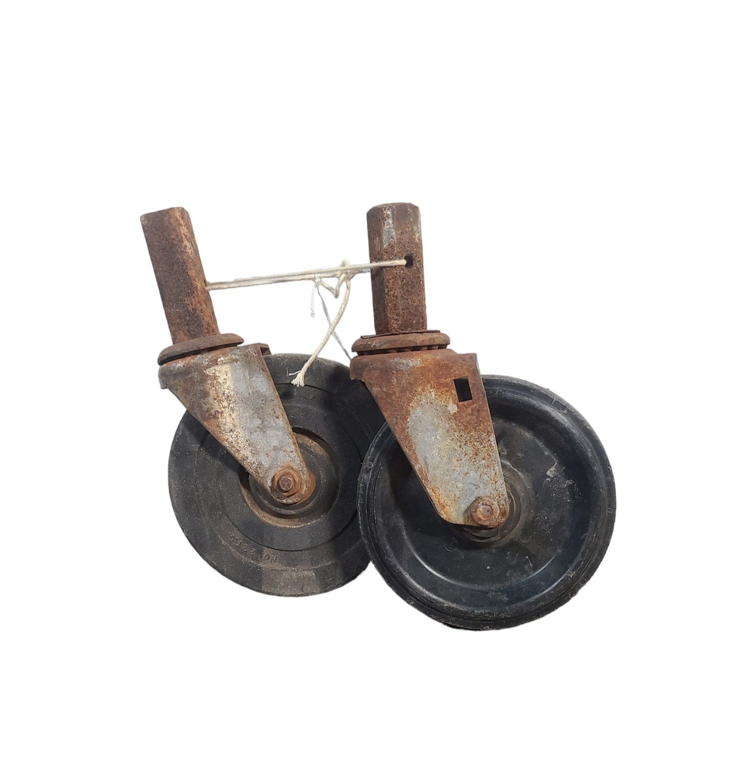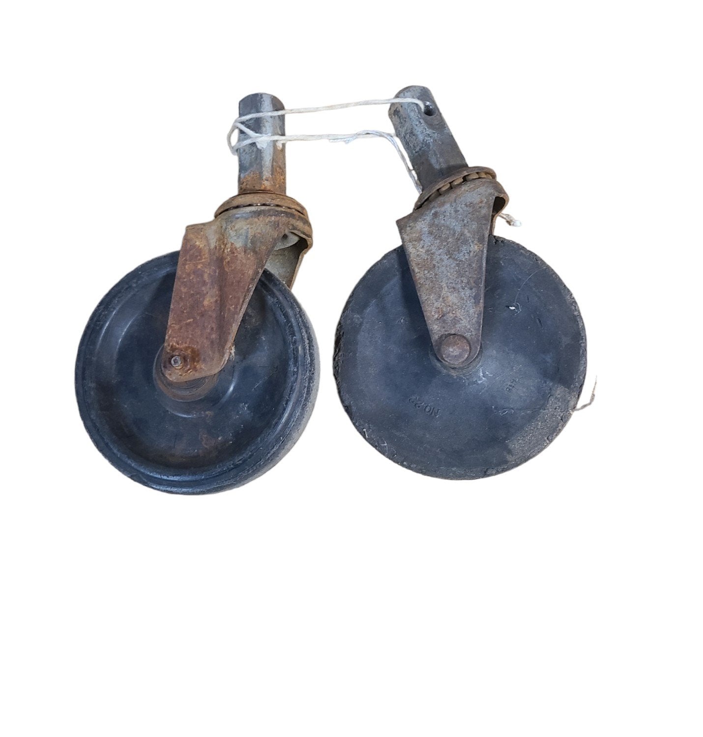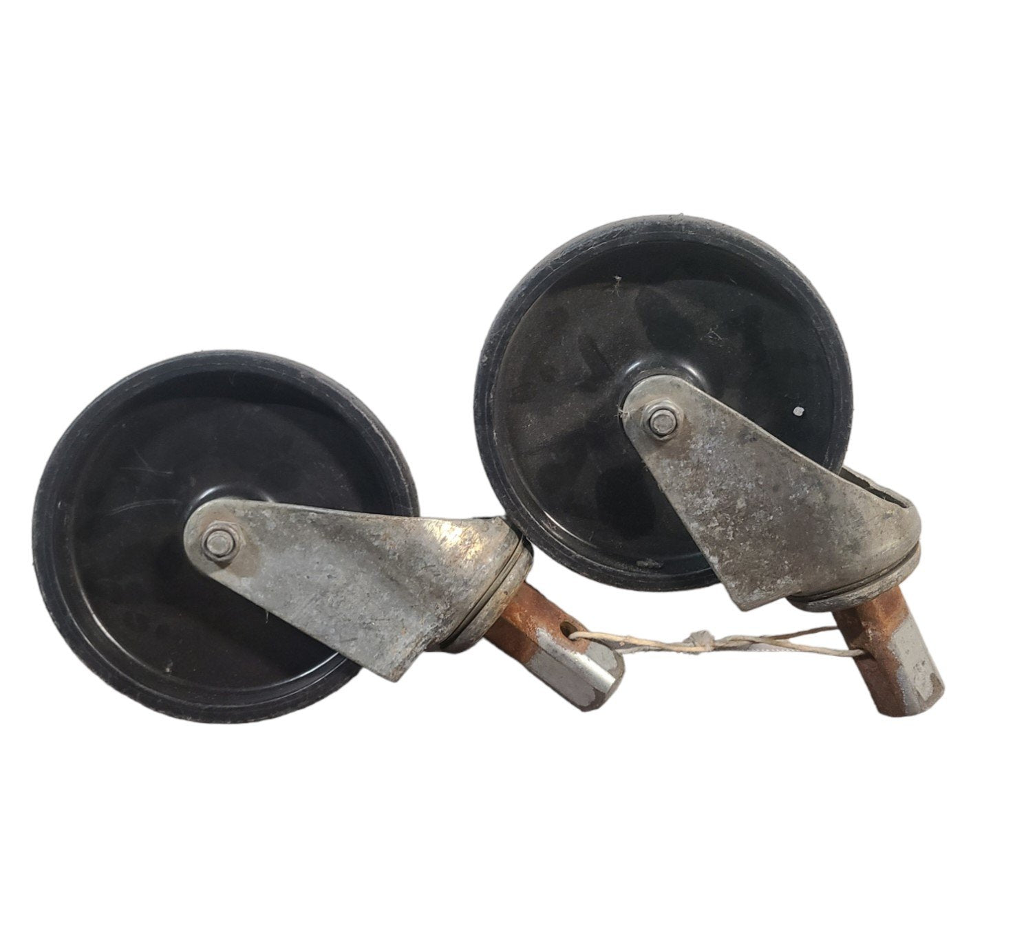 Vintage Set of Two Industrial Rubber Roller Wheel Metal Casters Rustic Set 2