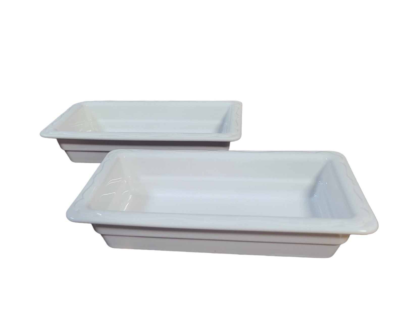 Vintage Set of Two White Buffet Serving Quarter Pans Hall China Company Ceramic