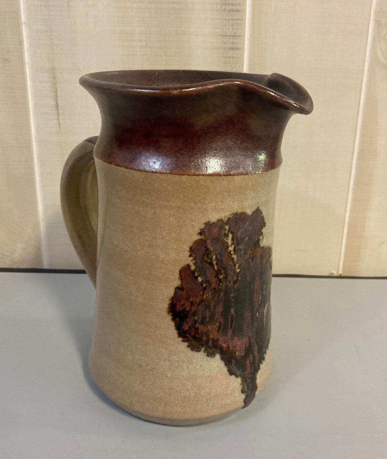 Vintage Signed Handmade Stoneware Crock Pottery Pitcher w Great Design & Color
