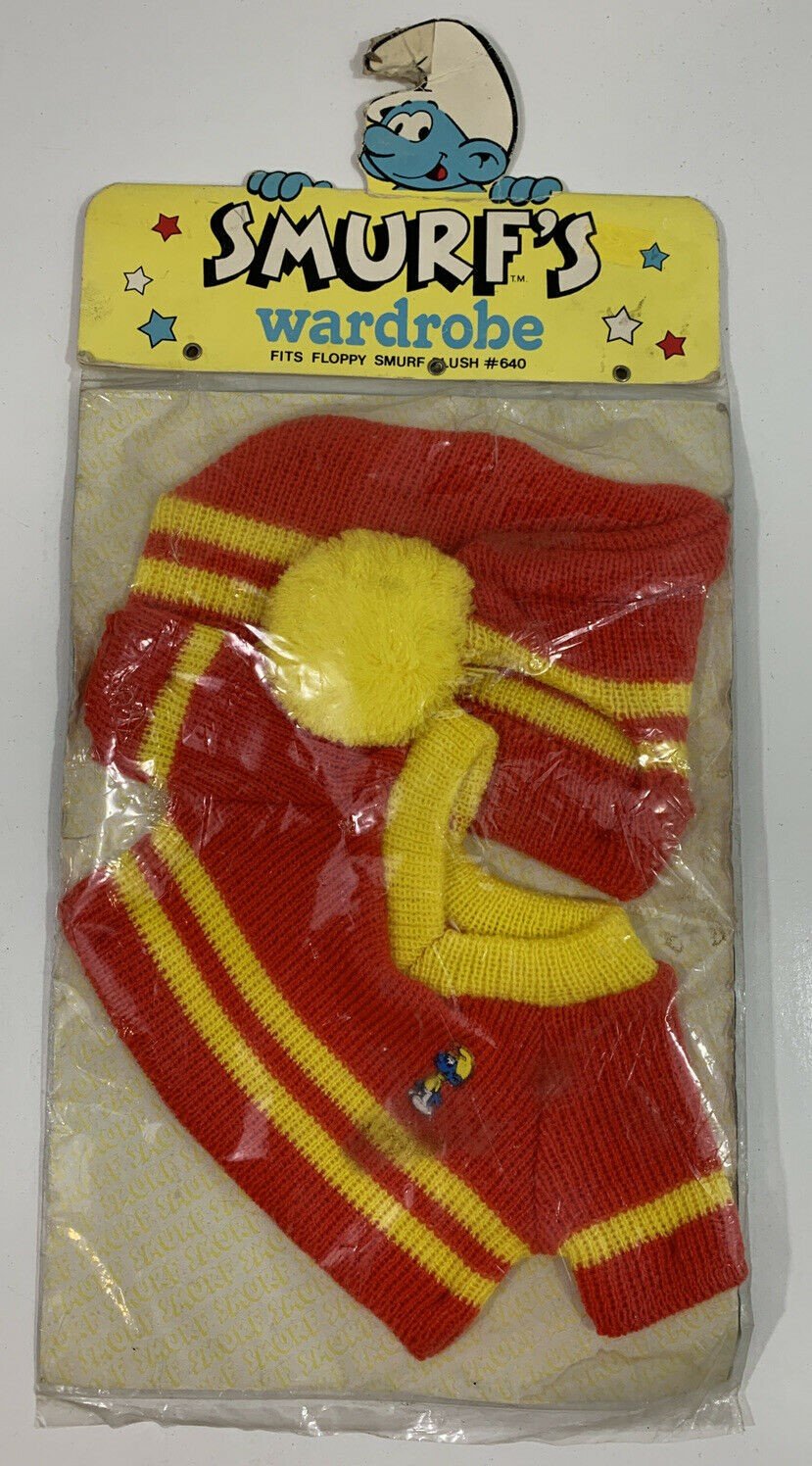 Vintage Smurf Wardrobe Fits Floppy Smurf Plush 640 Red Yellow Sweater Beanie Hat