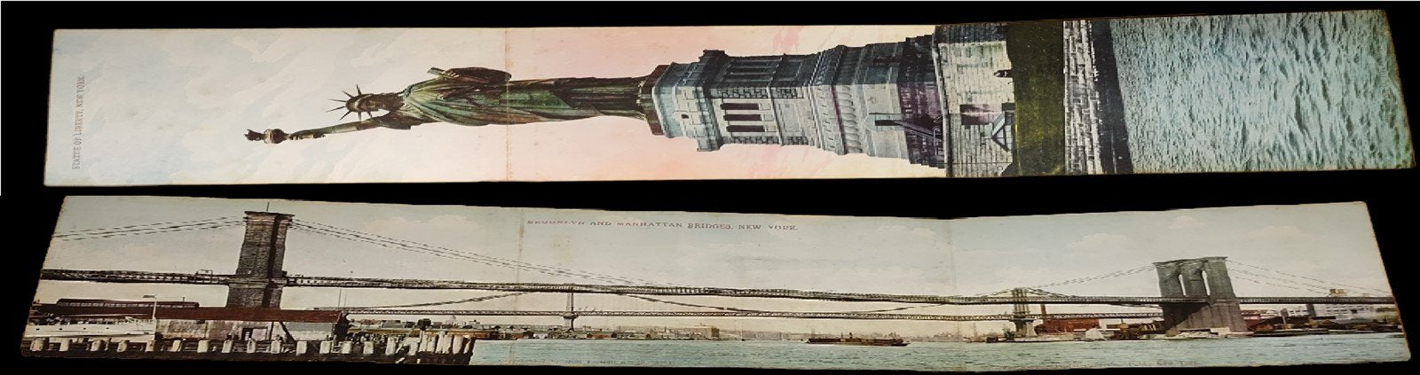Vintage Souvenir 2 Folding Post Cards Statue Liberty Brooklyn Manhattan Bridges