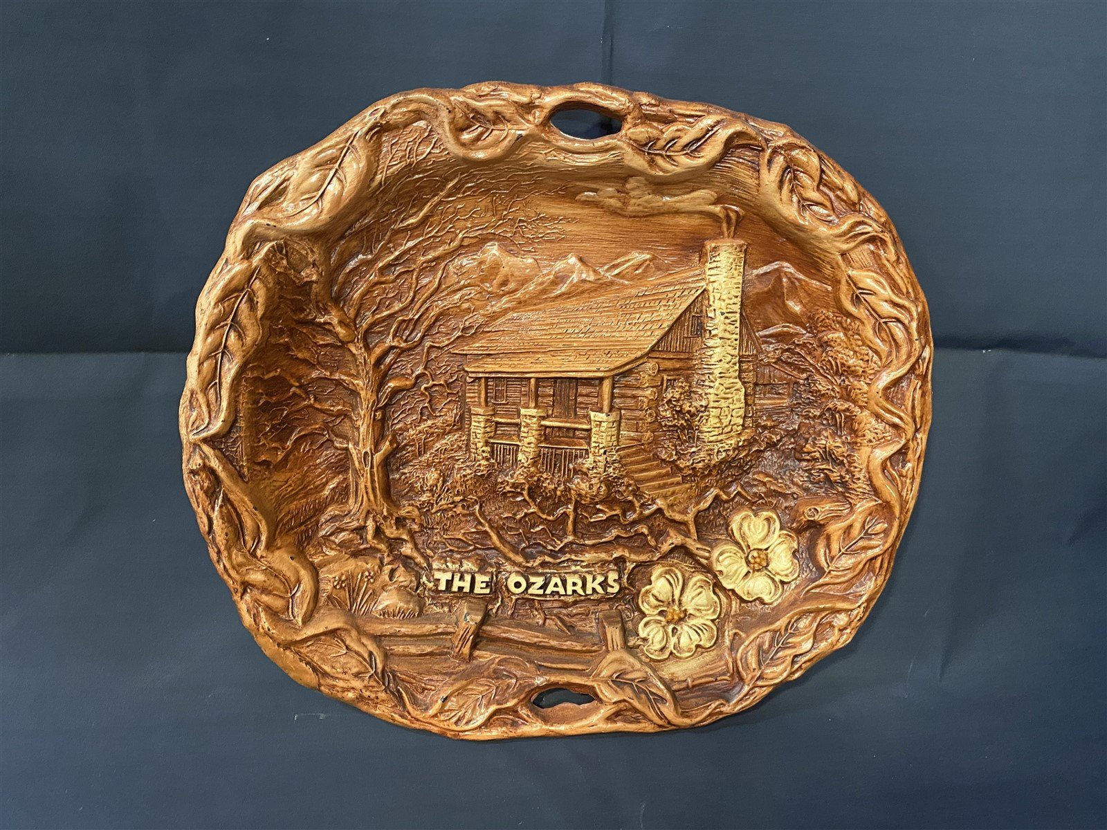 Vintage Souvenir Tourist Plate The Ozarks Log Cabin Lugenes/Branson Missouri