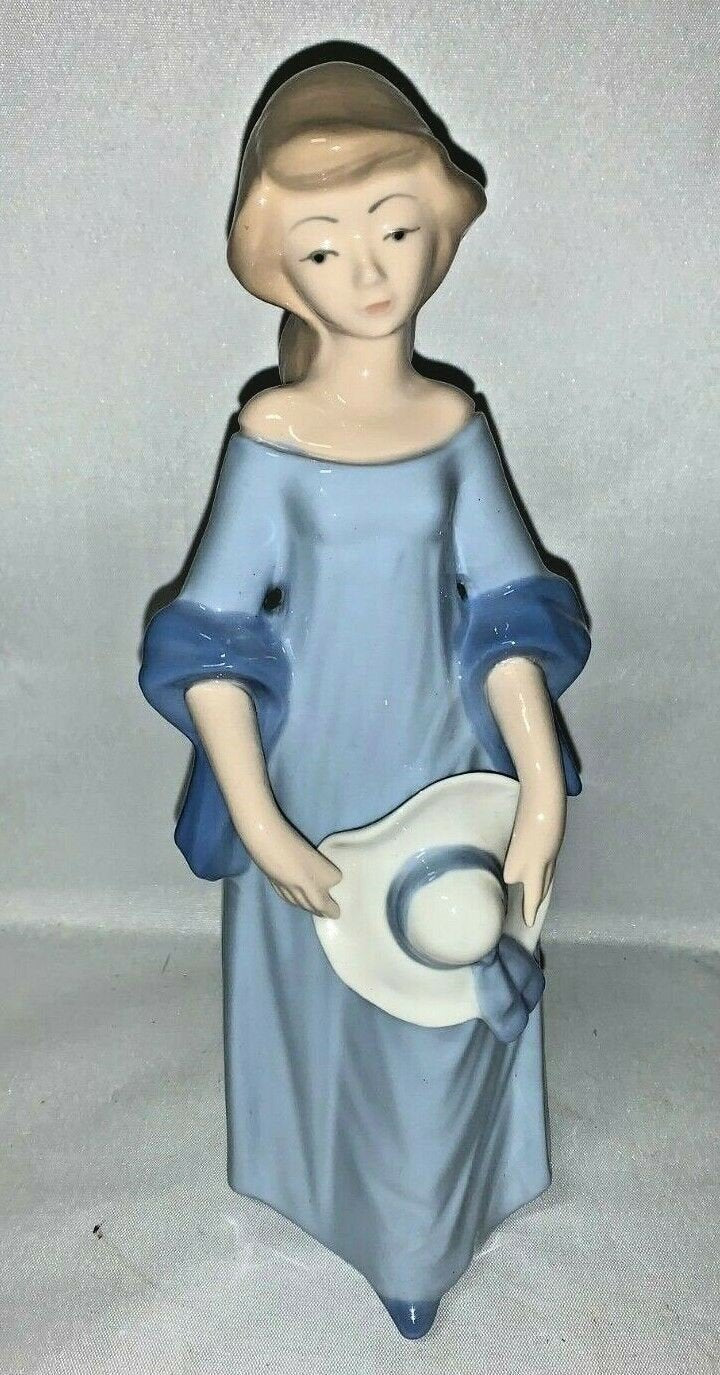 Vintage Tengra Porcelain Figure Young Woman w/ Bonnet in Empire Waist Dress