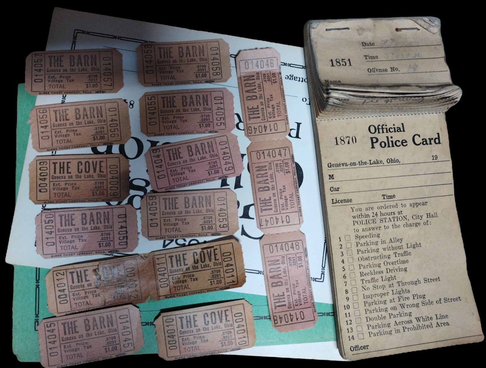 Vintage Real Geneva-On-The-Lake Police Card & Tickets The Cove Barn Lake Erie