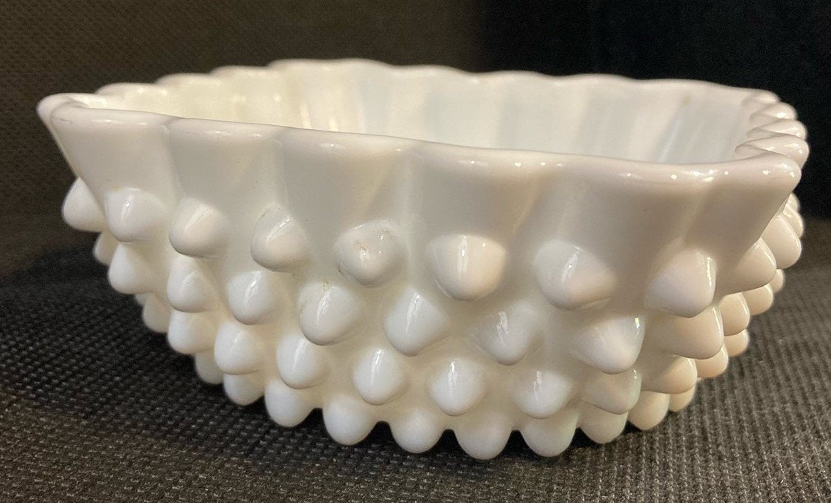 Vintage Rare 1960's Fenton Art Glass Milk Glass Hobnail Spooner Decorative Dish