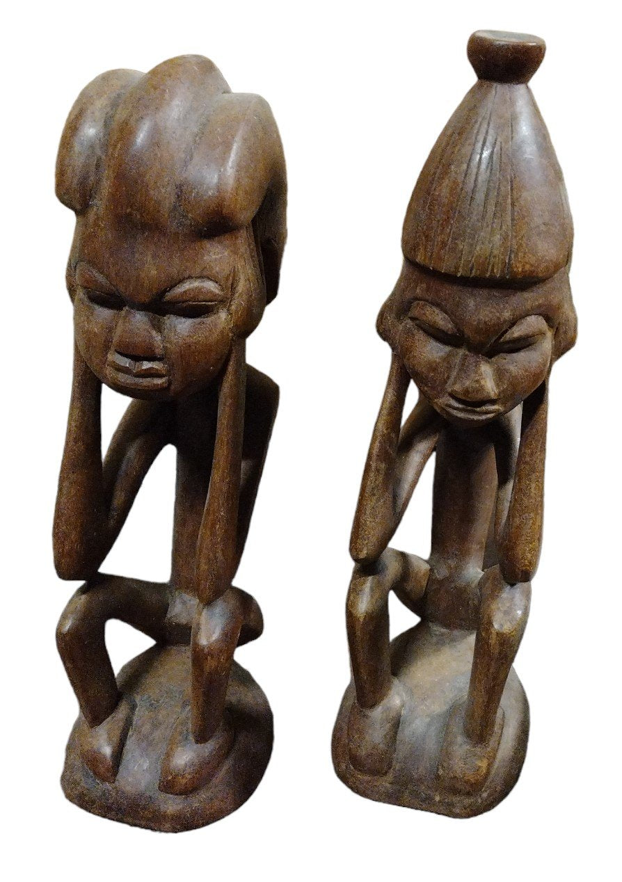 Antique Wooden Twin African "Man and Woman" Handmade Carved Decoration Statues