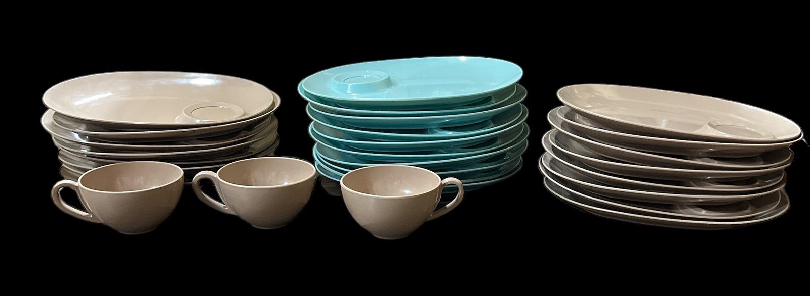 Apolloware Snack Tray Cups Antique Melmac by Alexander Barna Vintage 29 Pieces