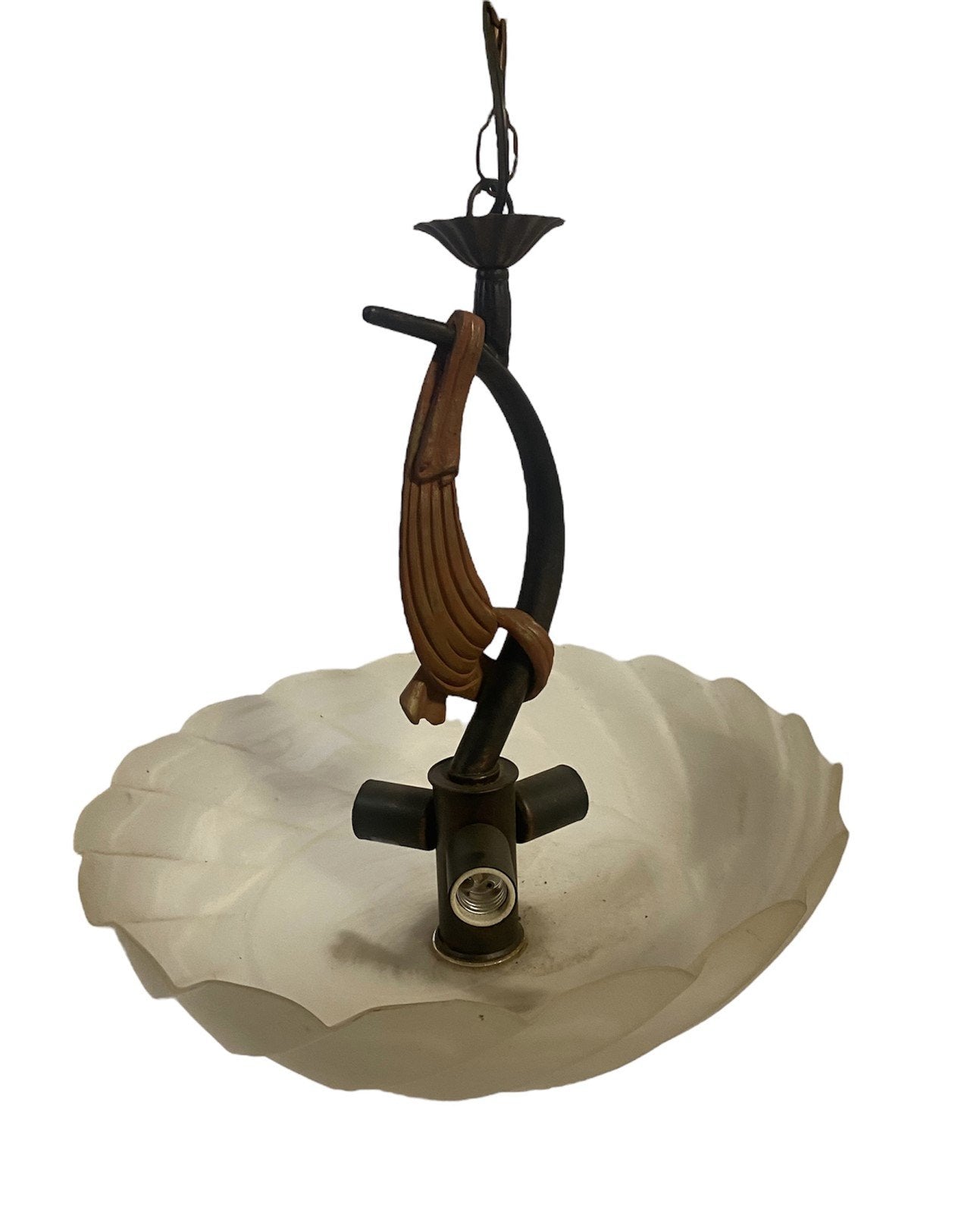 Art Deco Pendant Light Antique Glass With Brass Ribbon Sculpture Design