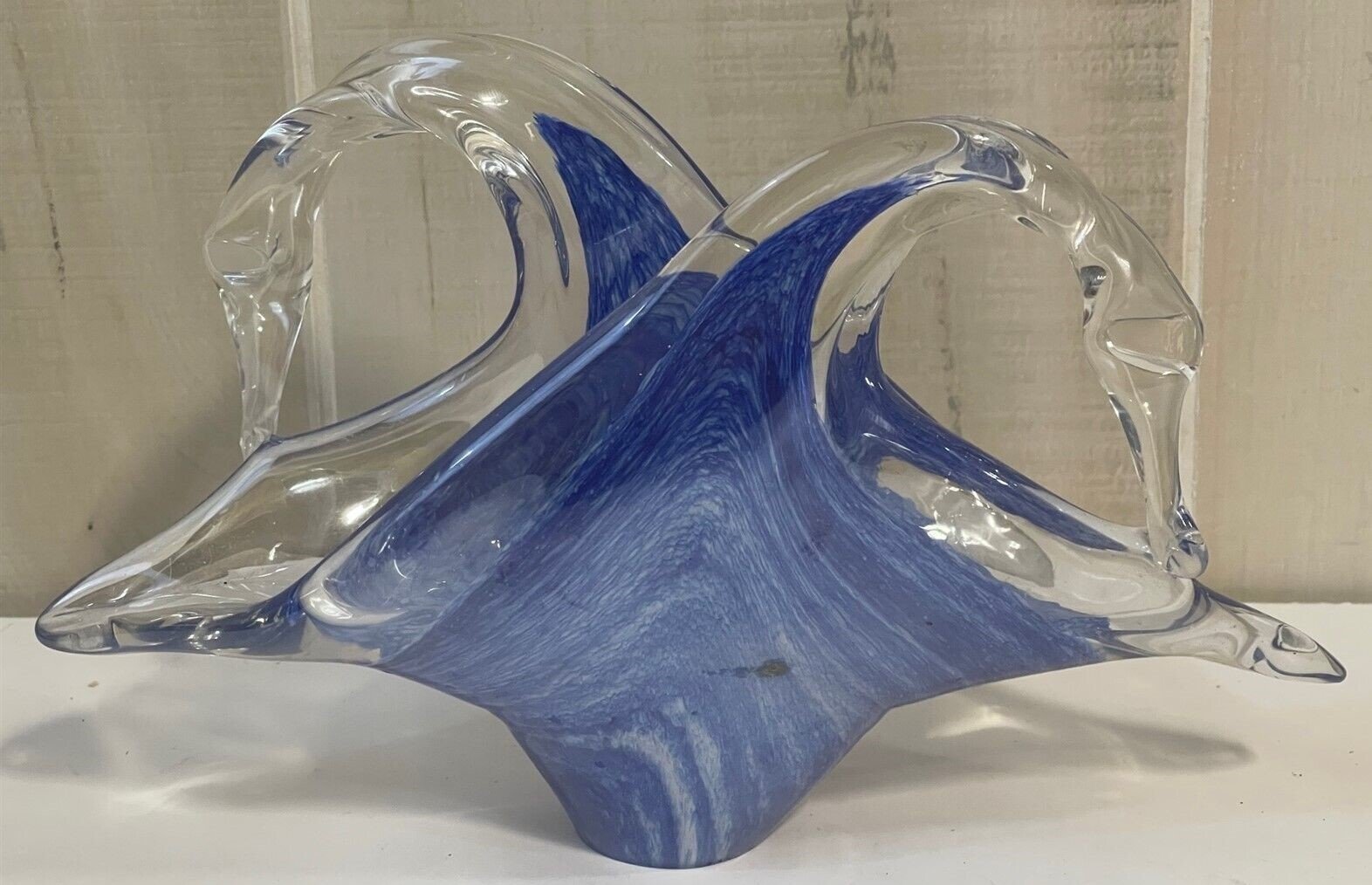 Art Murano Blue Glass Swan Napkin Holder w/ Sticker Vintage Lavorazione Italy