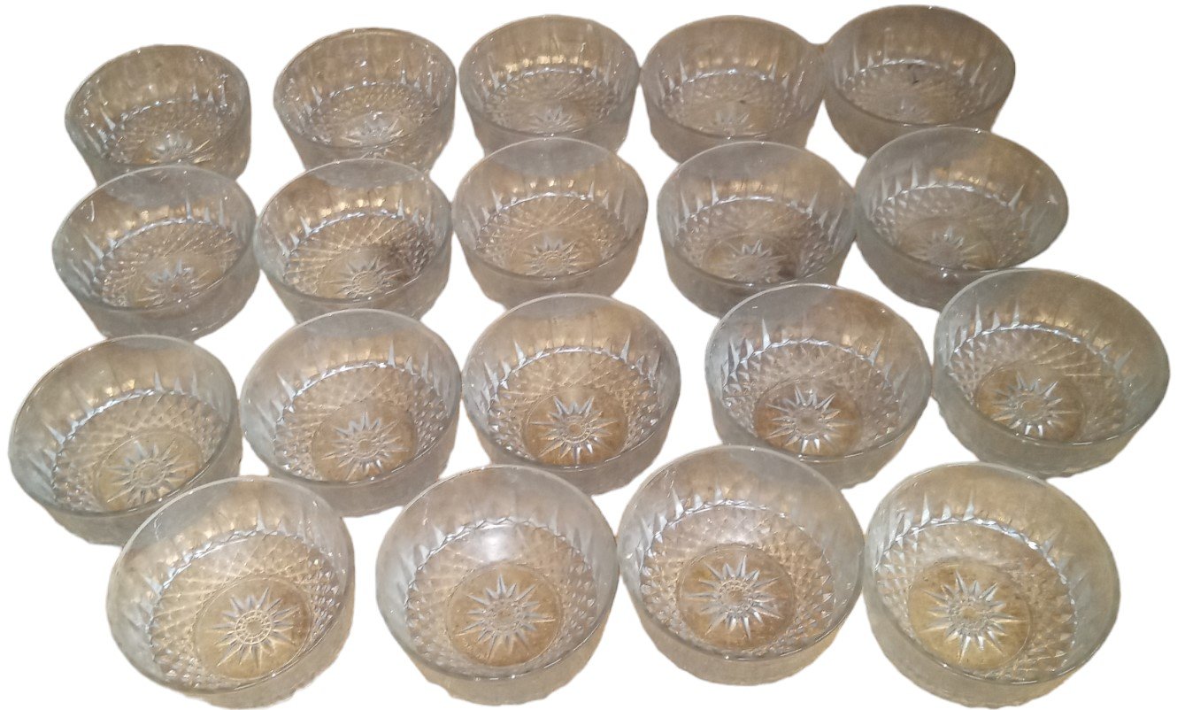Arcoroc France Cut Crystal Bowl Antique Starburst Salad Bowl Vintage Set of 19