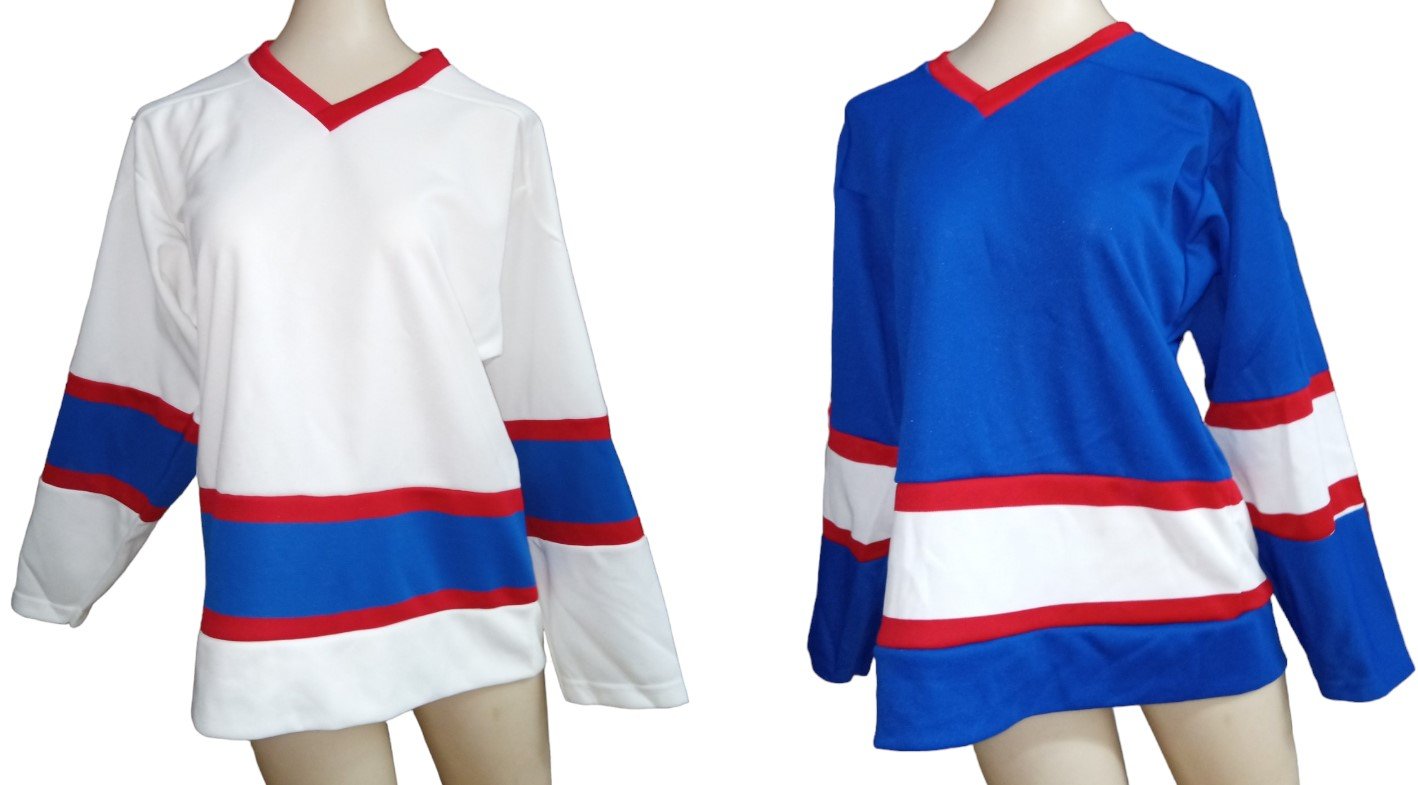 Athletic Hockey Jerseys White Blue Red Stripes L and M Size Red Collar Lot of 21
