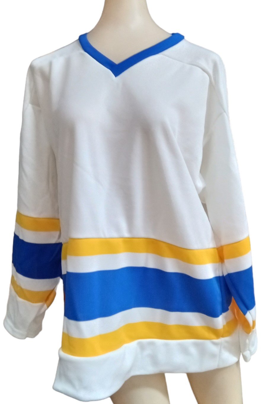 Athletic Hockey Jerseys White with Yellow Blue Stripes Multiple Sizes Lot of 20