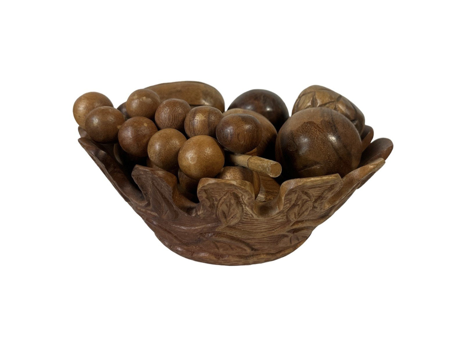 Authentic Hand Carved Bossant Wooden Fruit Bowl with 10pc of Wooden Fruit