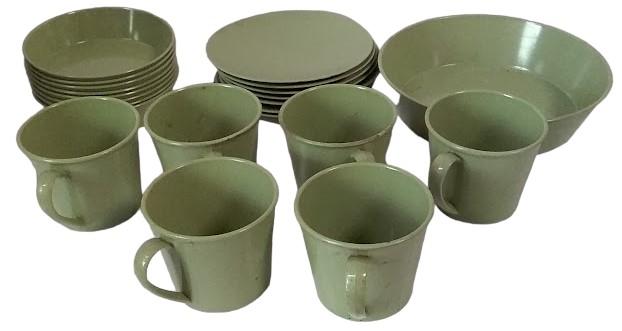 Avocado Green Vintage Genuine Melamine Serving Bowl Plate Bowl Cup 22 Pieces