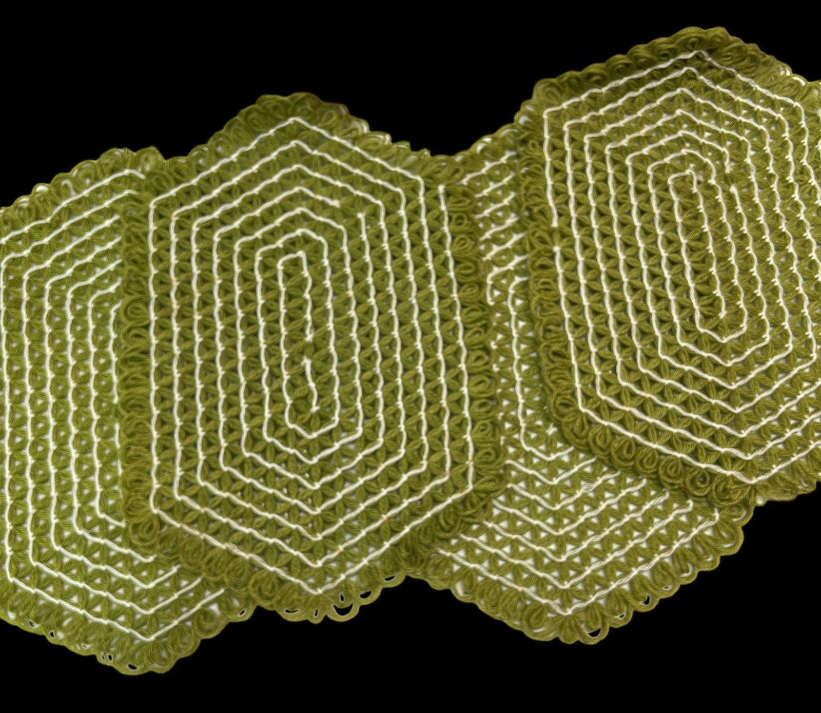 Avocado Green Yarn Placemats Antique Handmade with Loom Vintage 6 Pieces