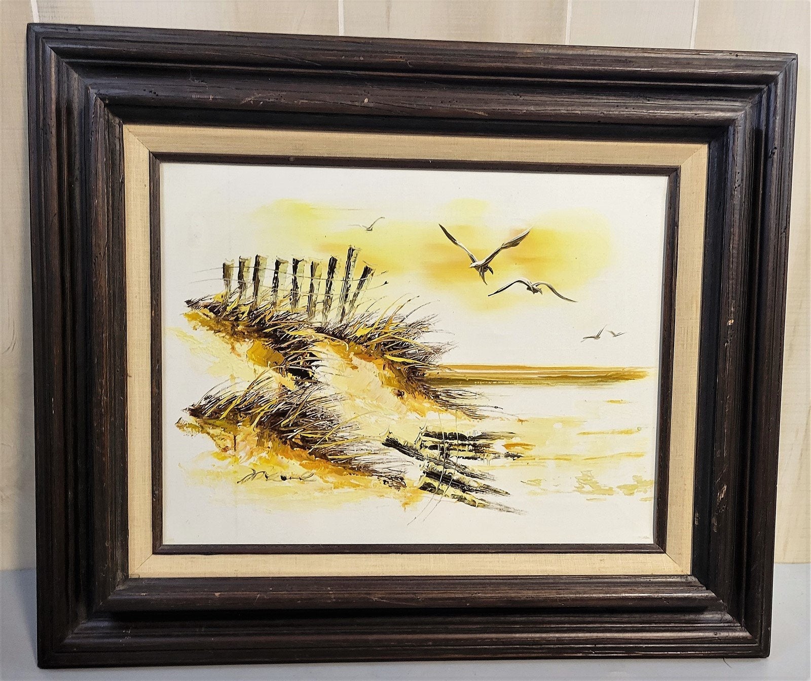 Beautiful Vintage 1970's Mid Century Oil Painting Sand Dunes In Yellow And Brown