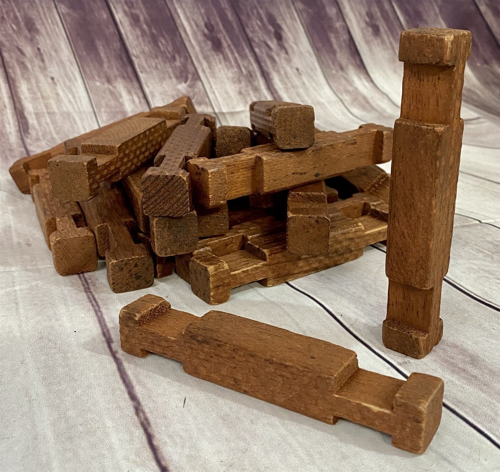 25 Vintage 1970's Wooden Lincoln Logs Small 1-Notch Square Log 1.5" Brown