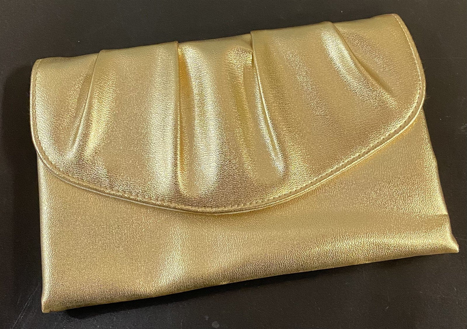 Vintage Gold Pleather Snap Closure Strapless Formal Evening Clutch Purse Handbag