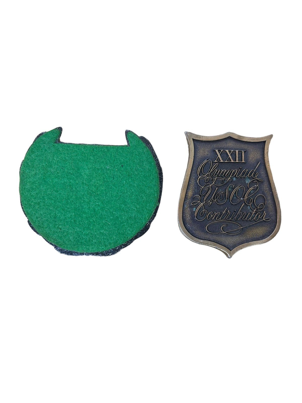 1980 Bergamot Brass Olympic Belt Buckle/'84 Olympic Metal Steel Paperweight Set
