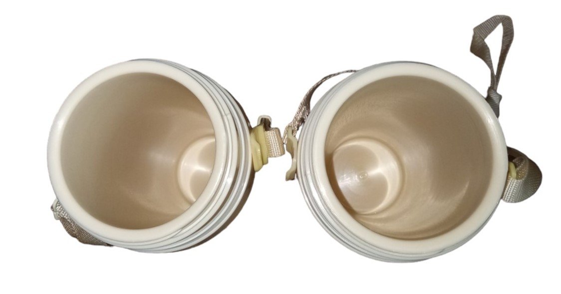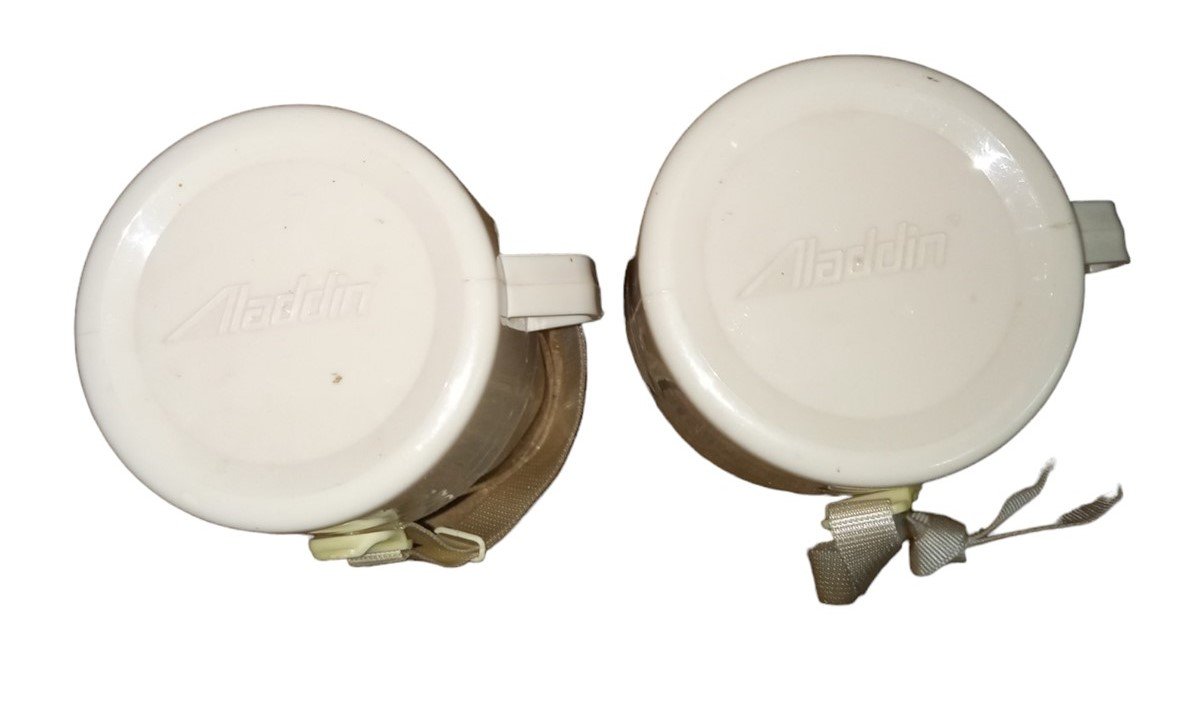 This is a pair of vintage Aladdin thermoses with Heinz branding likely made around the 1980s. They are in great condition for their age, showing no visible damage. These are great for any aspiring collector and are perfect for taking food and drinks on the go! Perfect for camping or travelling!