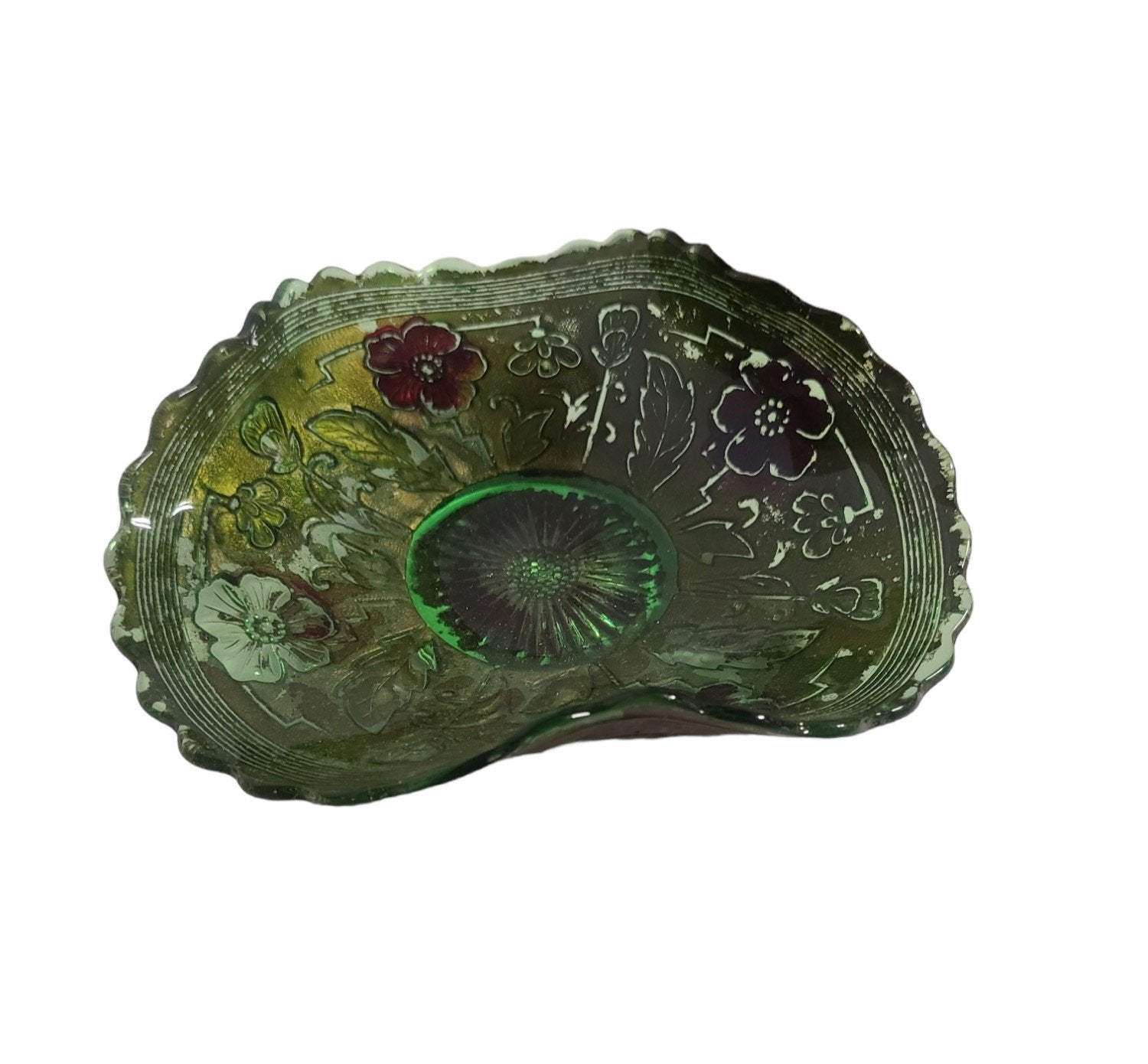Antique Depression Glass Green Red Goofus Candy Dish Early 20th Century Rare