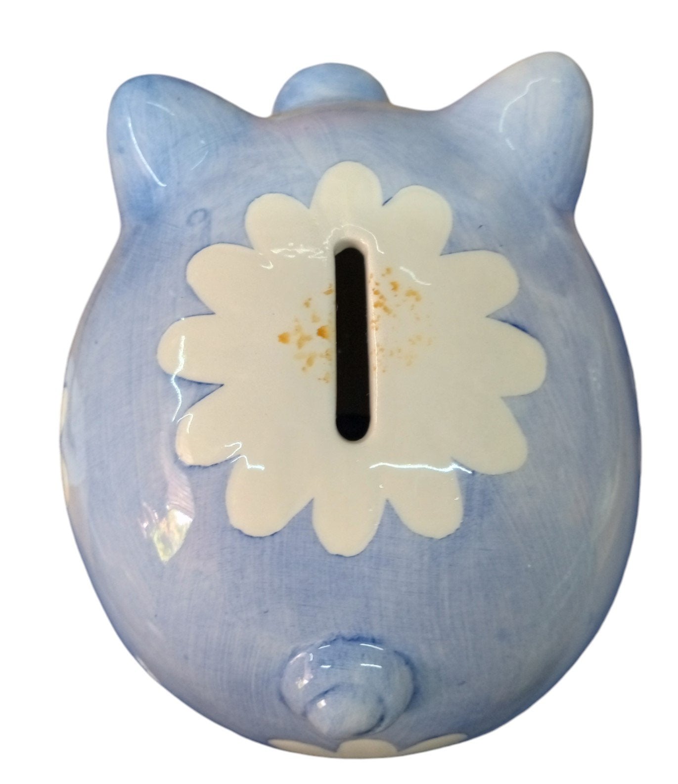 Blue and White Ceramic Pig Shaped Piggy Bank Vintage