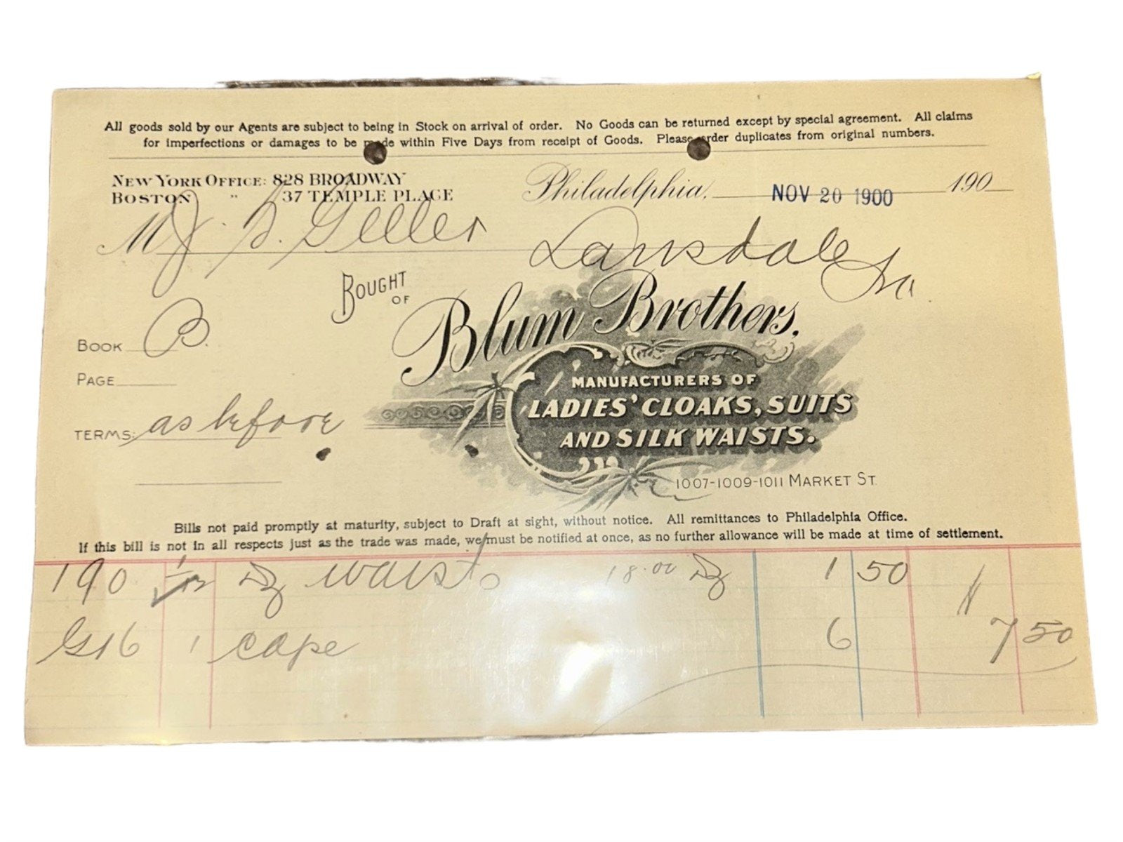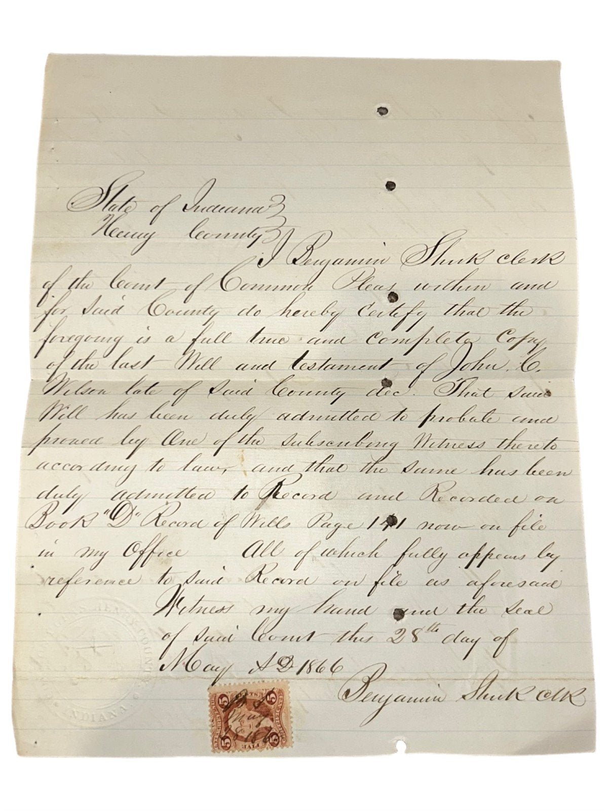 What an awesome lot of antique paperwork which includes an 1866 Will from John Wilson that has the original revenue stamp on it along with being notarized. This paper lot includes eight pieces from the 1800s and early 1900s. Also included our invoices from the CM Fay and company brewing company. Along with an order from an iron and steel company, a blank letterhead from the Shady, lawn duck and poultry farm, two different dividend notices from Dupont issuing $1.12 a share for preferred stock. Lastly, is an invoice from Blum Brothers ladies company for an order, along with an insurance paid out letter of $250 from the American insurance company from 1933. Great great variety of items of antique paperworkTake a look at the pictures for the best description. A photo is as good as a thousand words and is the best description of cosmetic condition. Use your ZOOM TOOL to best see this item! Please look closely at the photos for condition answers.