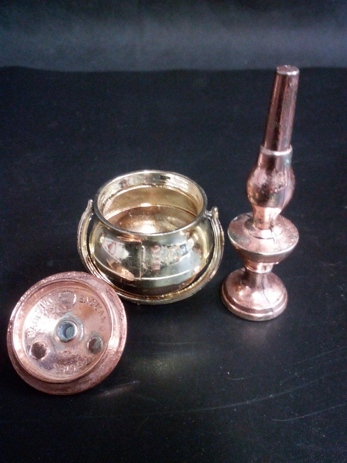 Brass 4pc Miniature Set With Teapot Kettles And Finial Collectible