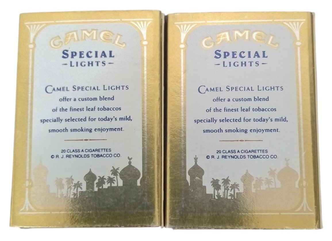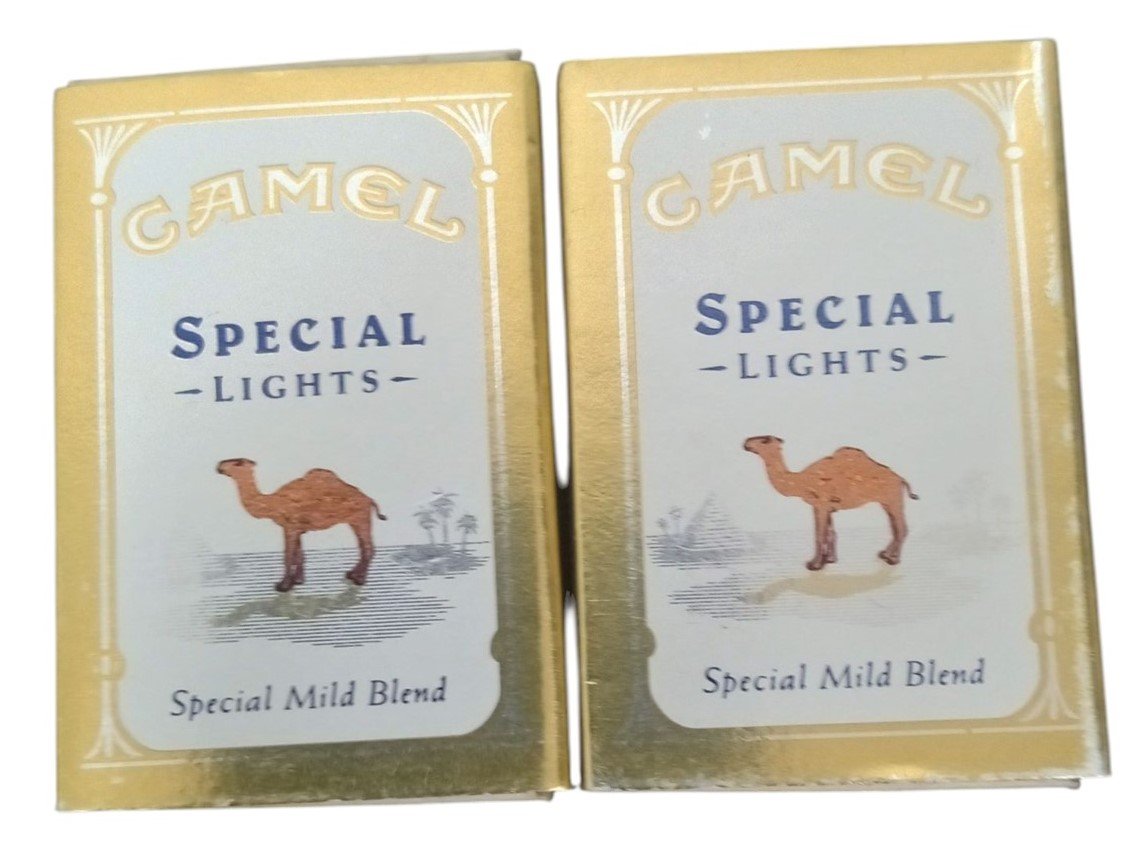 This is a set of Camel lighters and matches all made around the 1990s. Marks and scratches are visible. The Camel Cash Lotto lighters all appear to work but the other lighters do not. This set is great for any aspiring collector and is perfect for Joe Camel or tobacciana collection! This set includes 4 Camel Cash Lotto lighters (about 3" by 1") 2 Camel Cash lighters (about 3.5" by 1") 2 Camel Lights match strike lighters (about 2" by 1") 2 Camel Special Lights matchbooks (about 2" by 1")