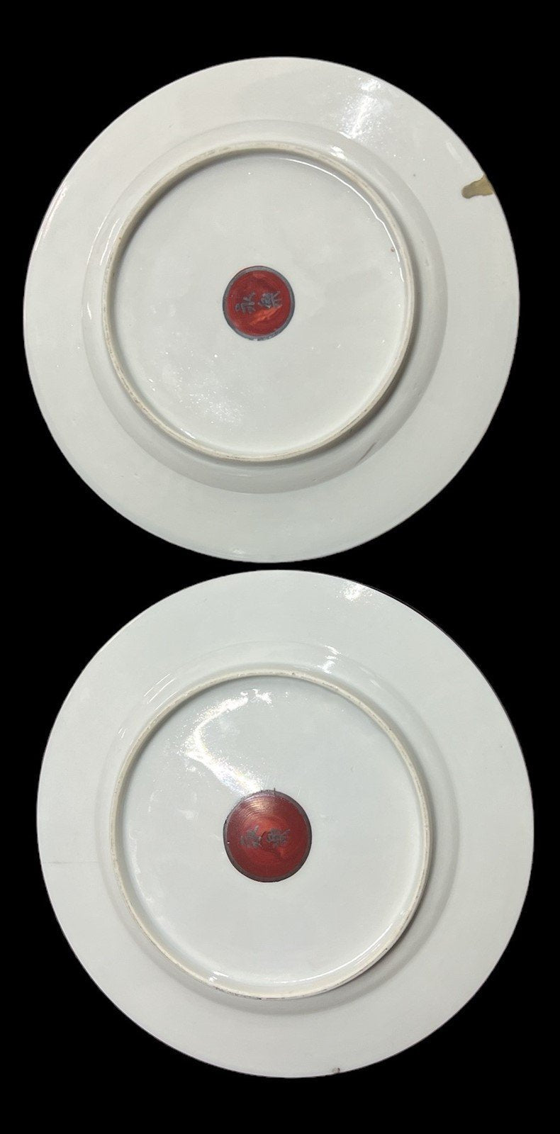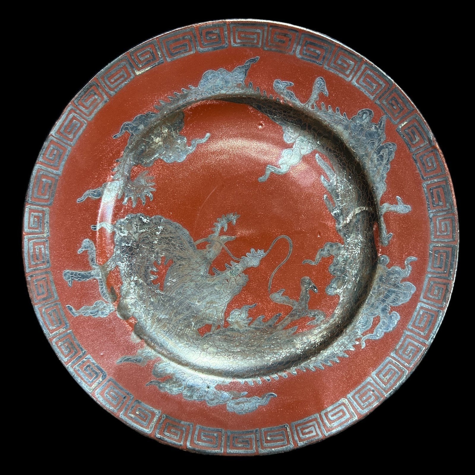 Ceramic Dragon Plate Antique Red Silver Vintage Set of 2 7.5" Diameter