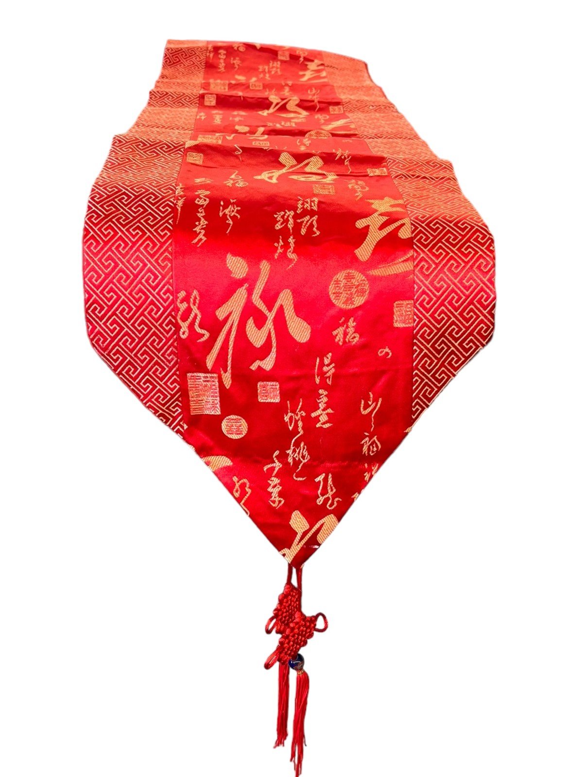 Chinese Red Mandarin Table Runner With Tassels Decoration
