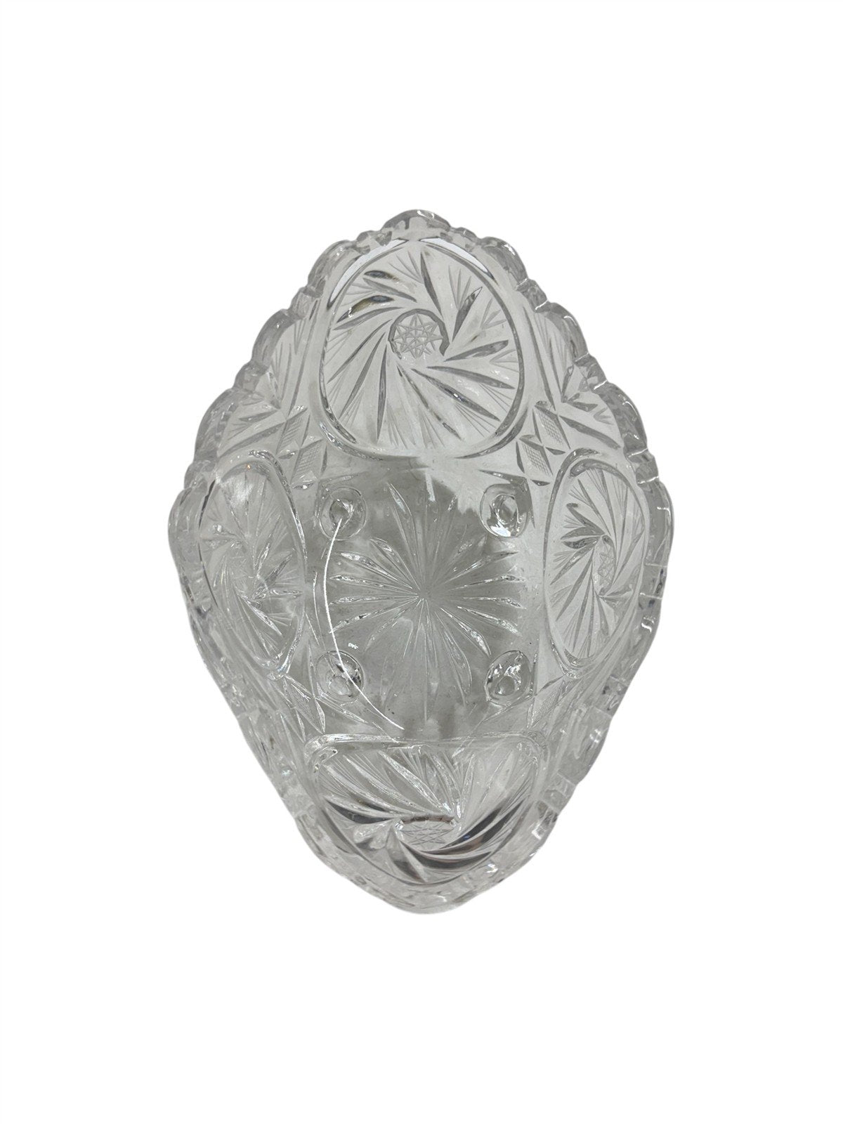 This is a beautiful Bohemian crystal candy dish with pinwheel designs. This piece would be great to put candy in around the holidays or for any other trinkets. The piece is in great condition with very minimal marks. The dish is about 7" long, 4.5" wide and about 3" deep. This is a perfect piece for any collector!
