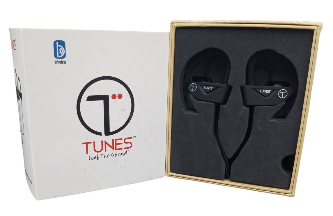 This is a pair of wireless Bluetooth earbuds made by Tunes likely around the mid to late 2000s. The box has some minor marks, The earbuds show some minor marks and scratches but still appear to power on when charged. These are perfect for any aspiring collector and great for listening to music! The box measures about 6" by 5" by 3", the earbuds themselves measure about 2" by 2" with the cord measuring about 20" long. The charging cord measures about 31" long.