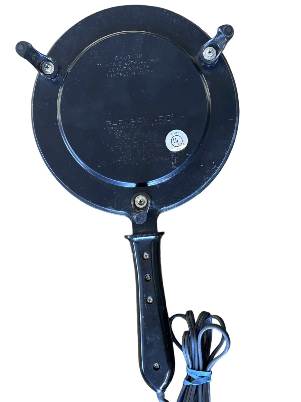 This is a Farberware crepe maker! It has a long electrical cord and works wonderfully! It's model 263 120 V 60 HZ A.C. Only 500 Watts. It's in great condition, it just has a very small mark on the heated part. It's 17in x 9in x 4in.Take a look at the pictures for the best description. A photo is as good as a thousand words and is the best description of cosmetic condition. Use your ZOOM TOOL to best see this item! Please look closely at the photos for condition answers.