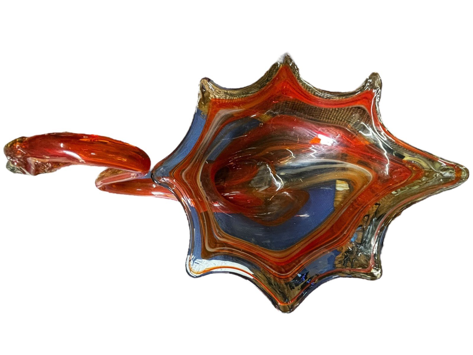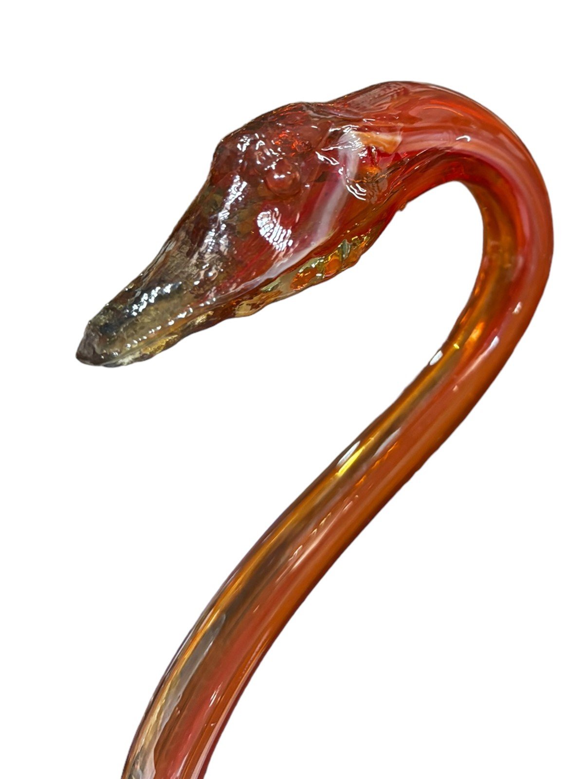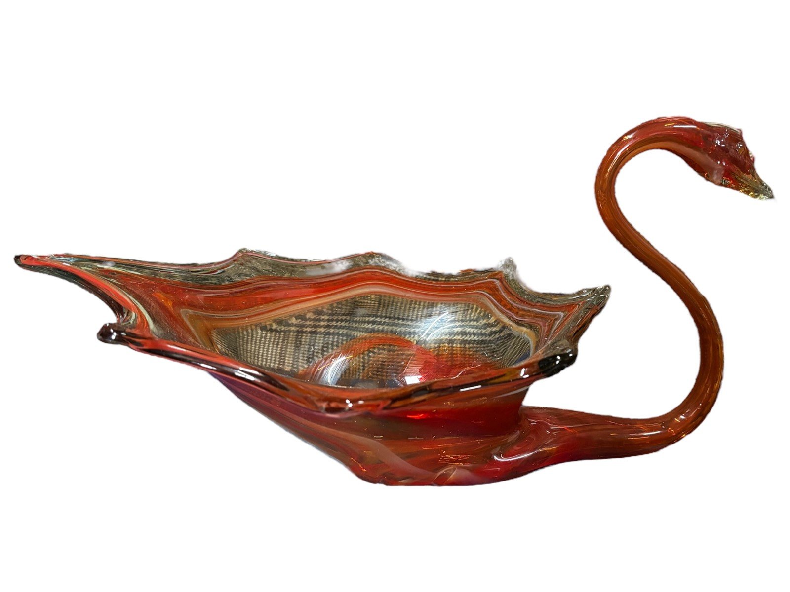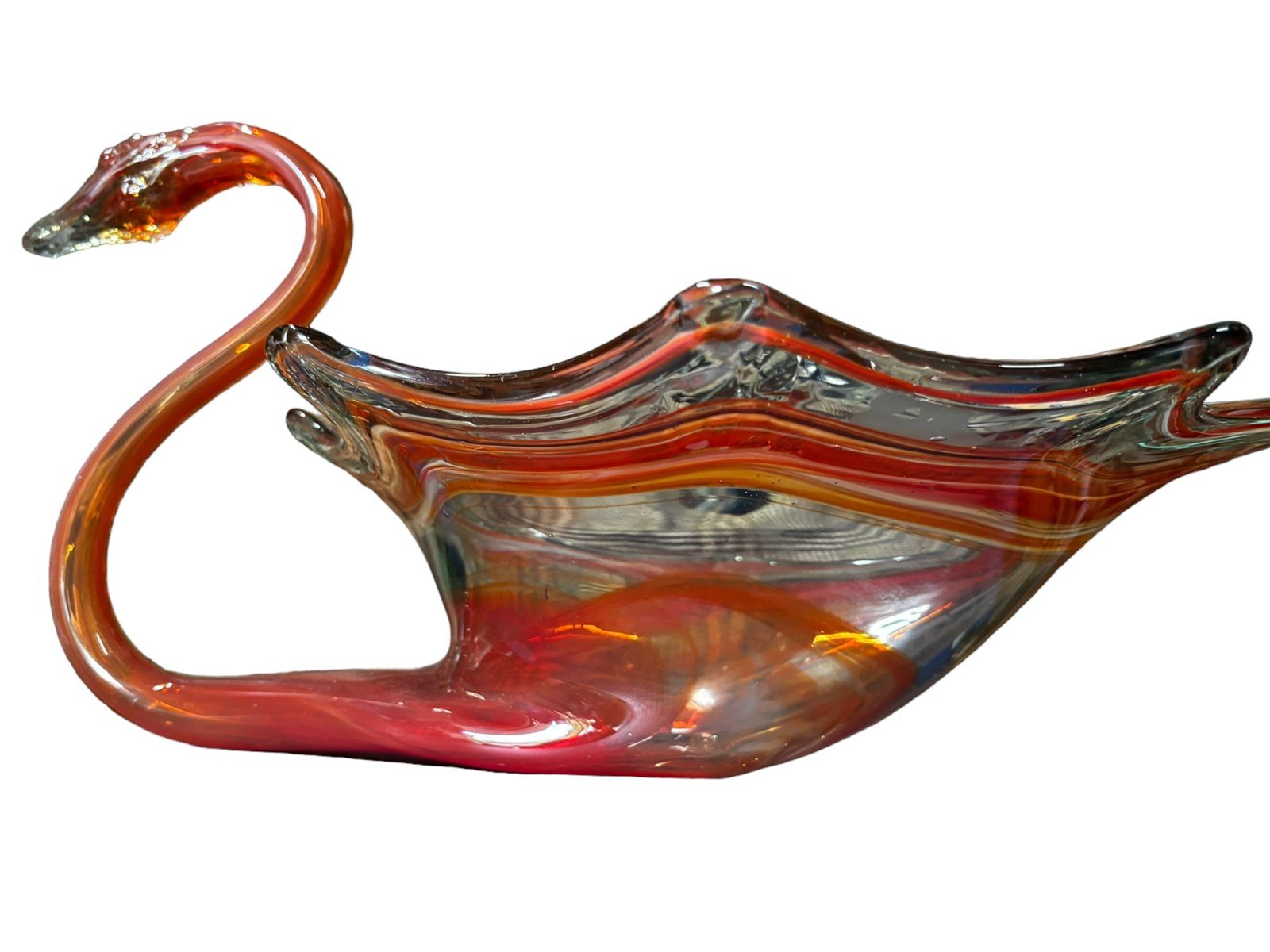 Fenton Murano Glass Blown Orange and Clear Swan Decorative Bowl