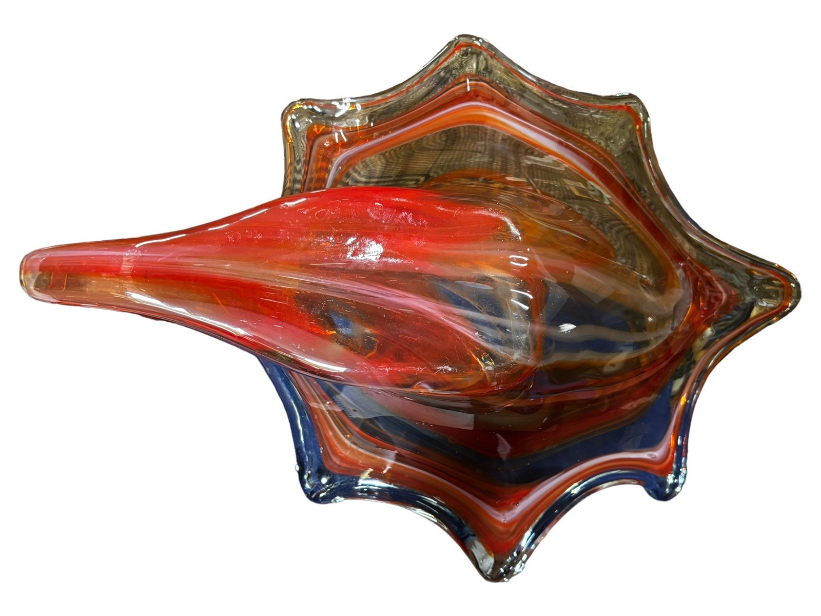 This is a fenton murano glass blown orange and clear swan decorative bowl. It's in great condition and it measures 16 /2in x 11 1/2in x 8 1/2in. It's a large bowl not meant for food, just for decoration.Take a look at the pictures for the best description. A photo is as good as a thousand words and is the best description of cosmetic condition. Use your ZOOM TOOL to best see this item! Please look closely at the photos for condition answers.