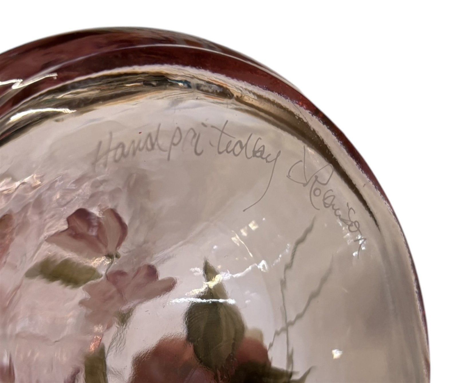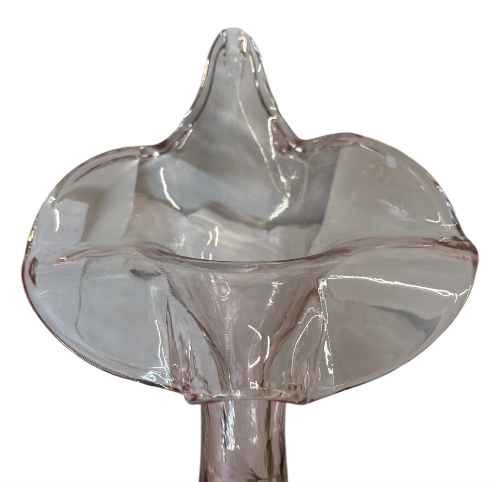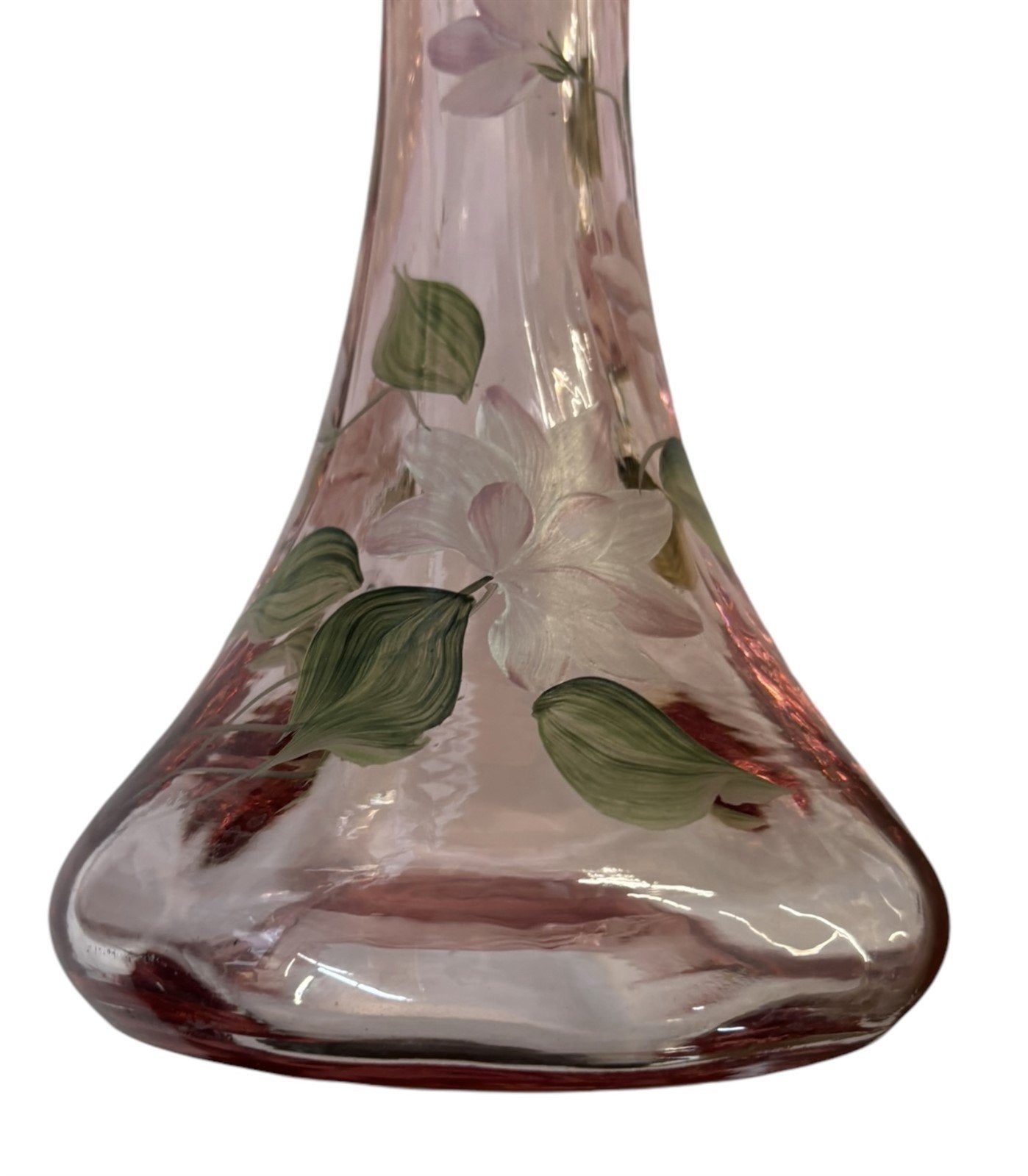 Fenton Vase Handpainted Pink Floral Art Glass Ruffled Edge Signed Bottom