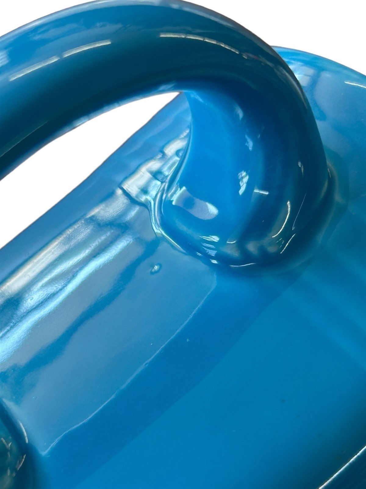 This is a Retired Square Mug from Fiesta Ware! It is in the retired color Peacock, a gorgeous shade of blue that will look perfect in your kitchen. This piece has never been used before; it's brand new! As shown in the photos, this piece has some discolored spots on the sides. Otherwise, it has no chips or scratches and is in fantastic condition! Add it to your collection today! The Square Mug measures approximately 3.75 inches in diameter, 4.5 inches wide including the handle, and 3.75 inches tall.Take a look at the pictures for the best description. A photo is as good as a thousand words and is the best description of cosmetic condition. Use your ZOOM TOOL to best see this item! Please look closely at the photos for condition answers.
