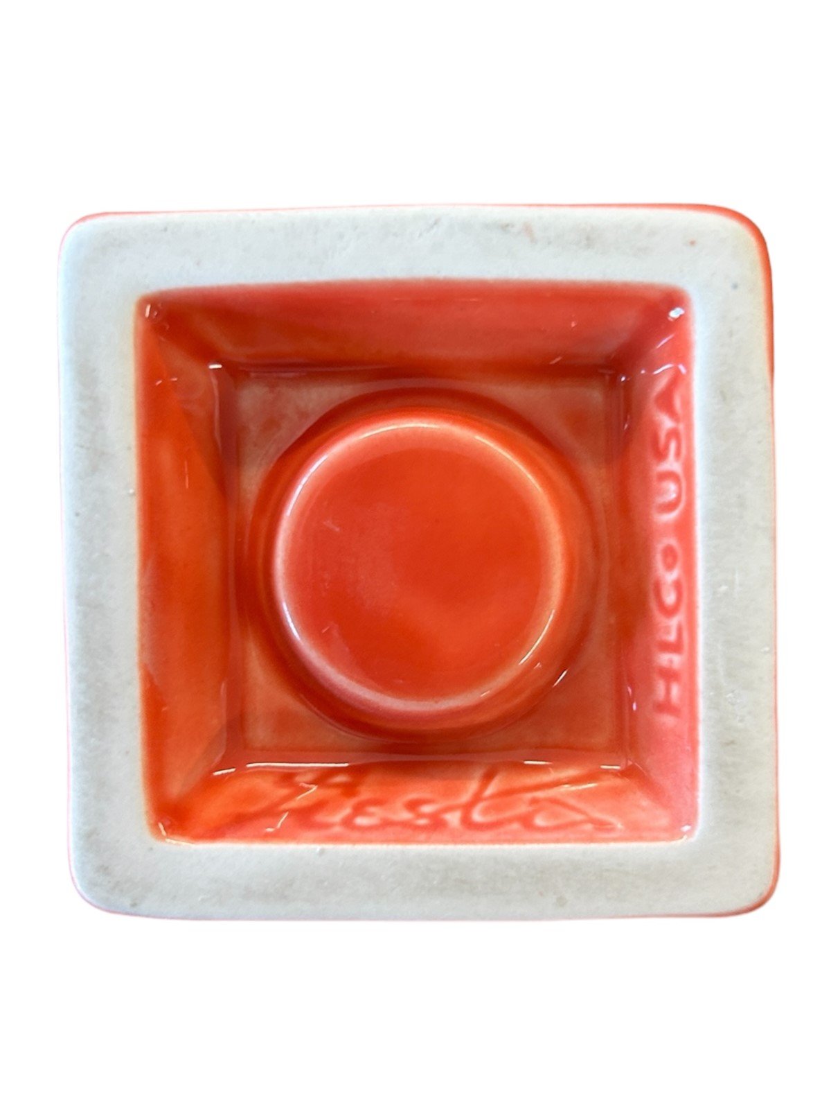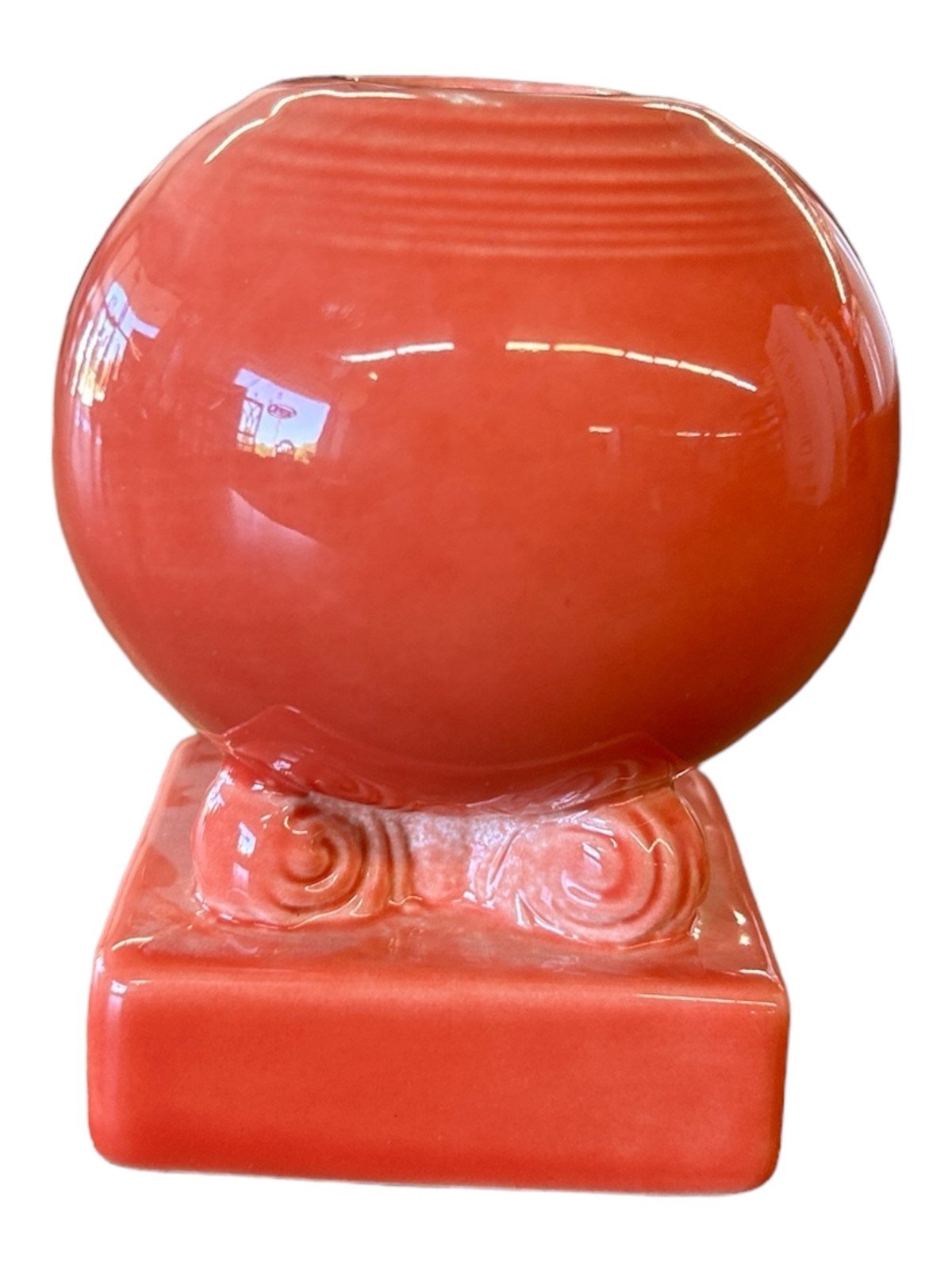 This is a Bulb Candle Holder from Fiesta Ware! It comes in the retired color Persimmon, a shade that can be describe as orange or peach! This design is no longer made by Fiesta. A Fiesta piece that is a retired model and a retired color would make a great addition to your collection! As shown in the photos, this piece has two white spots on the top. Otherwise, it is in great condition and has no chips or scratches! Don't miss the chance to get this amazing piece! The Bulb Candle Holder is approximately 3.75 inches tall and 2.25 inches wide.Take a look at the pictures for the best description. A photo is as good as a thousand words and is the best description of cosmetic condition. Use your ZOOM TOOL to best see this item! Please look closely at the photos for condition answers.