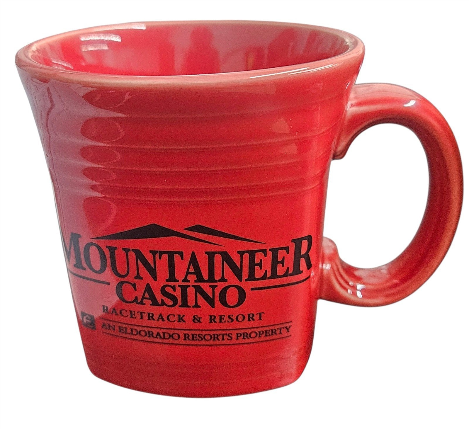 This is a limited edition Square Mug from Fiesta Ware with a "Mountaineer Casino Racetrack And Resort writing on it ! It is in the color Scarlet, a gorgeous shade of red that will look perfect in your kitchen. This piece has never been used before and is in pristine condition. It has no chips or scratches! Add it to your collection today! The Square Mug measures approximately 3.75 inches in diameter, 4.5 inches wide including the handle, and 3.75 inches tall.Take a look at the pictures for the best description. A photo is as good as a thousand words and is the best description of cosmetic condition. Use your ZOOM TOOL to best see this item! Please look closely at the photos for condition answers.