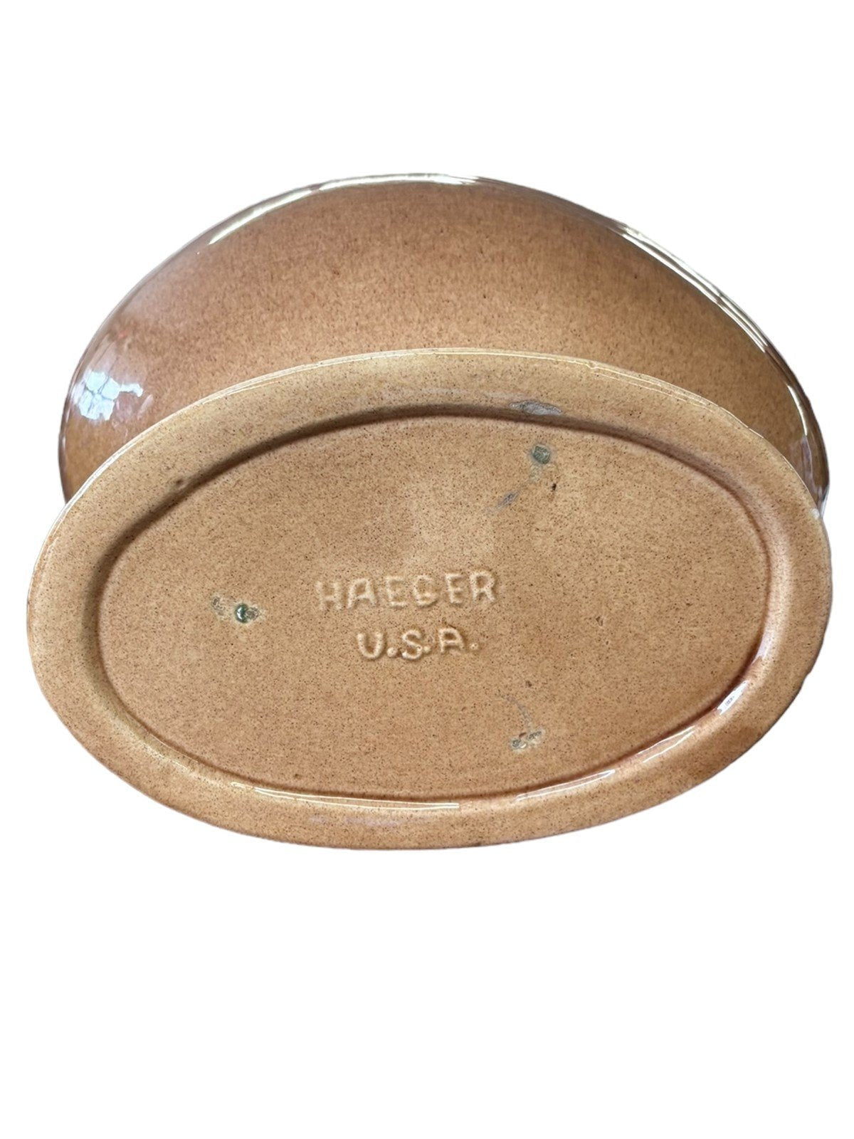 This is a Haeger USA football planter. It's in good condition and it measures 10in x 6 1/2in x 8in. It's a tannish brown color.Take a look at the pictures for the best description. A photo is as good as a thousand words and is the best description of cosmetic condition. Use your ZOOM TOOL to best see this item! Please look closely at the photos for condition answers.