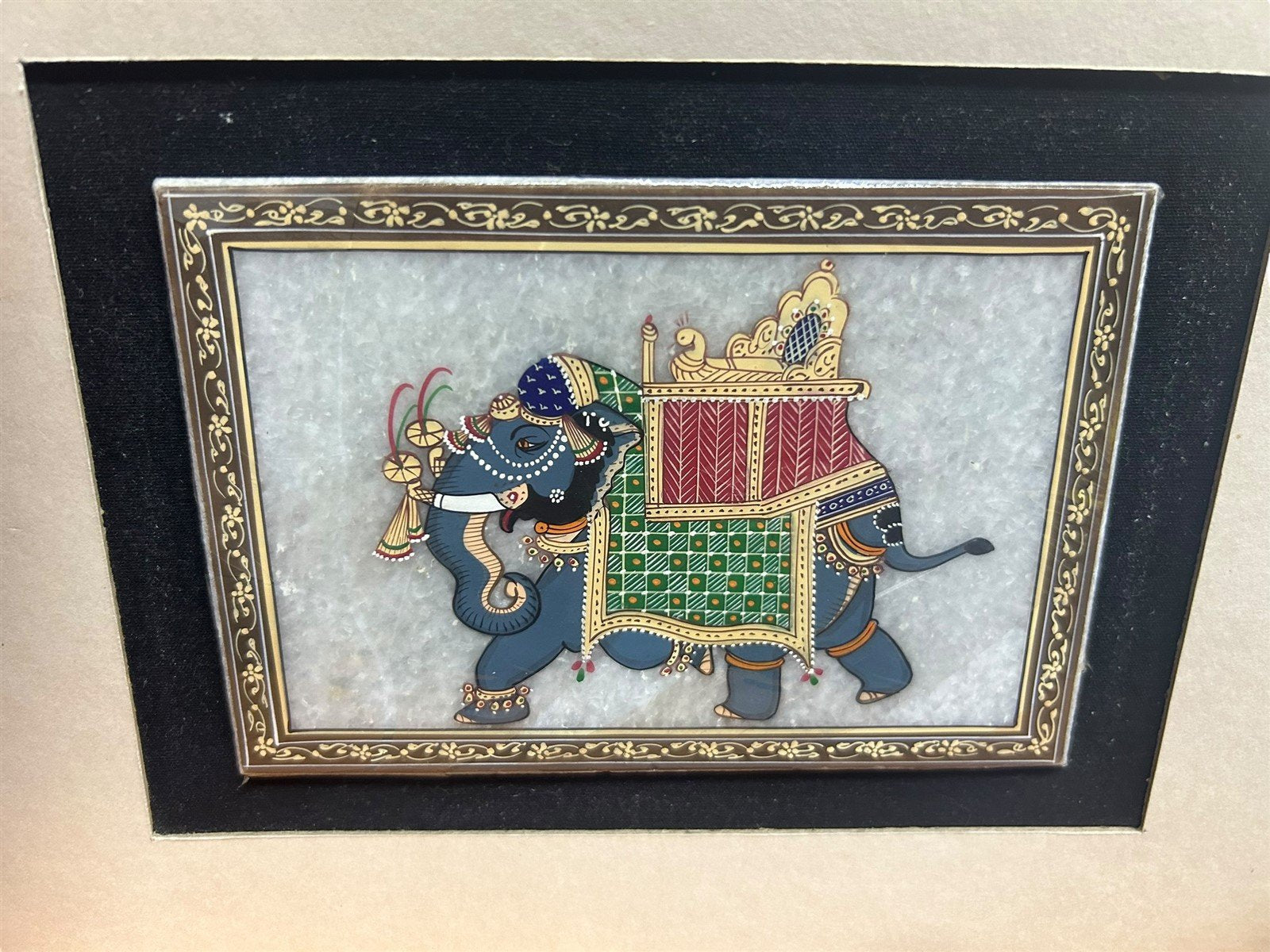 Hand Painted Vintage Hindu Art Fancy Elephant Slab of Stone Tile Collectible