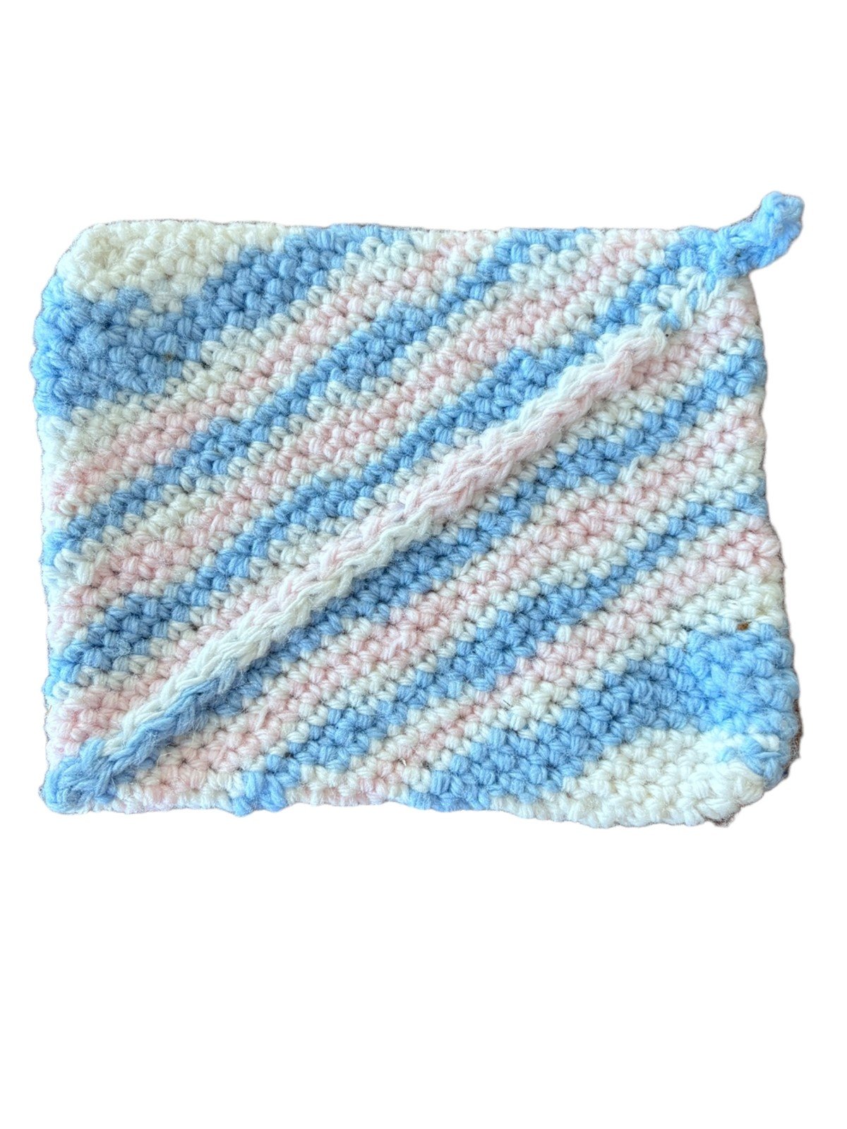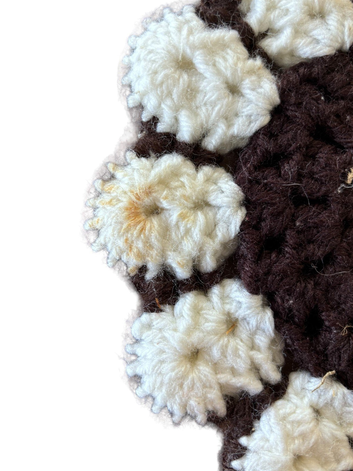 This is a set of 4 handknit stove trivets. They are all super cute and soft. They have been used prior, the flower trivets have a few small stains that aren't super noticeable. The flower trivets measure 8 1/2in x 8 1/2in. The heart trivet measures 6 1/2in x 6 1/2in. The rectangle trivet measures 5in x 6in.Take a look at the pictures for the best description. A photo is as good as a thousand words and is the best description of cosmetic condition. Use your ZOOM TOOL to best see this item! Please look closely at the photos for condition answers.