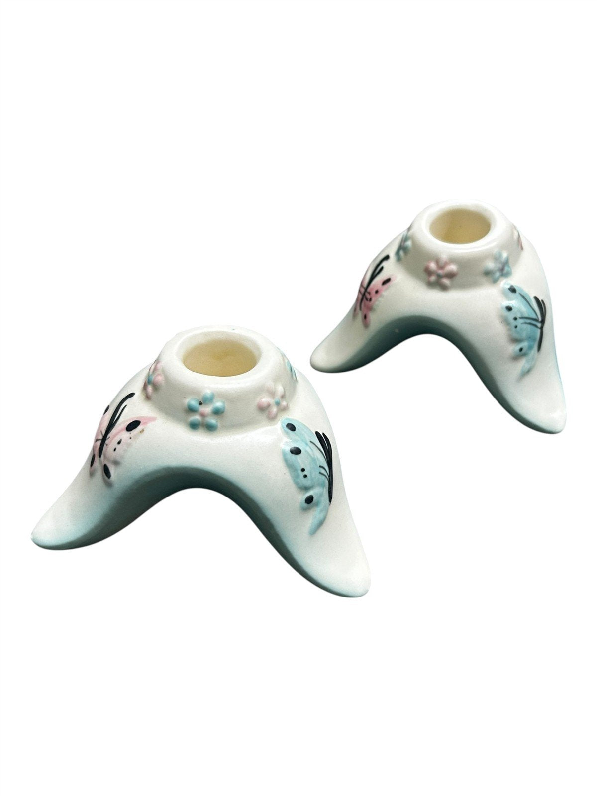 Hull Pottery Butterfly Candleholders, Vase, Ashtray, Tray and Basket Vintage Lot