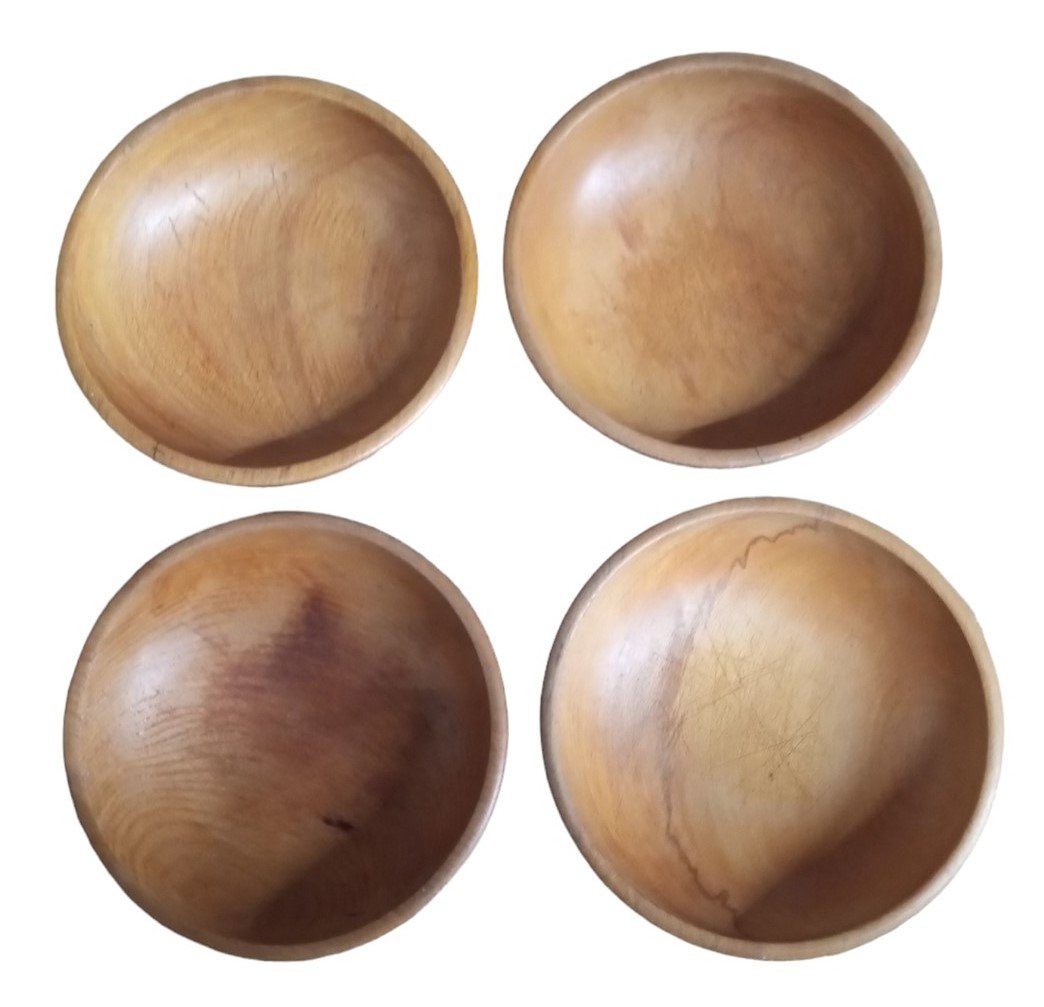 Japanese Wooden Salad Bowls Set Of 4 Vintage Collectible Serveware Kitchenware
